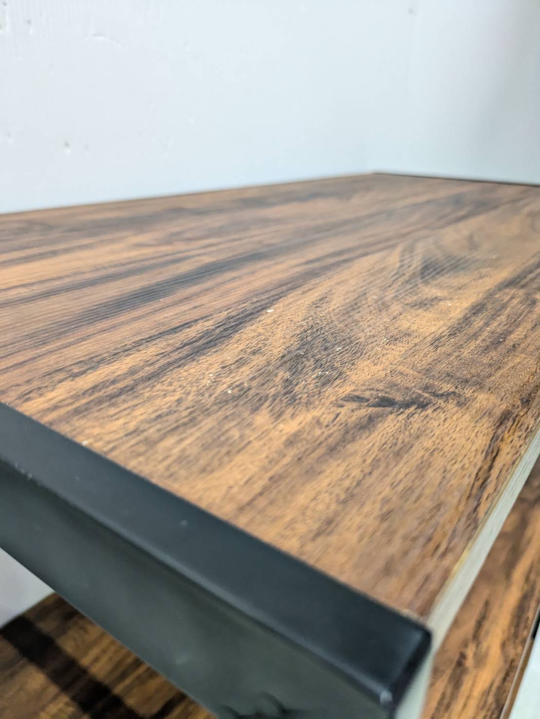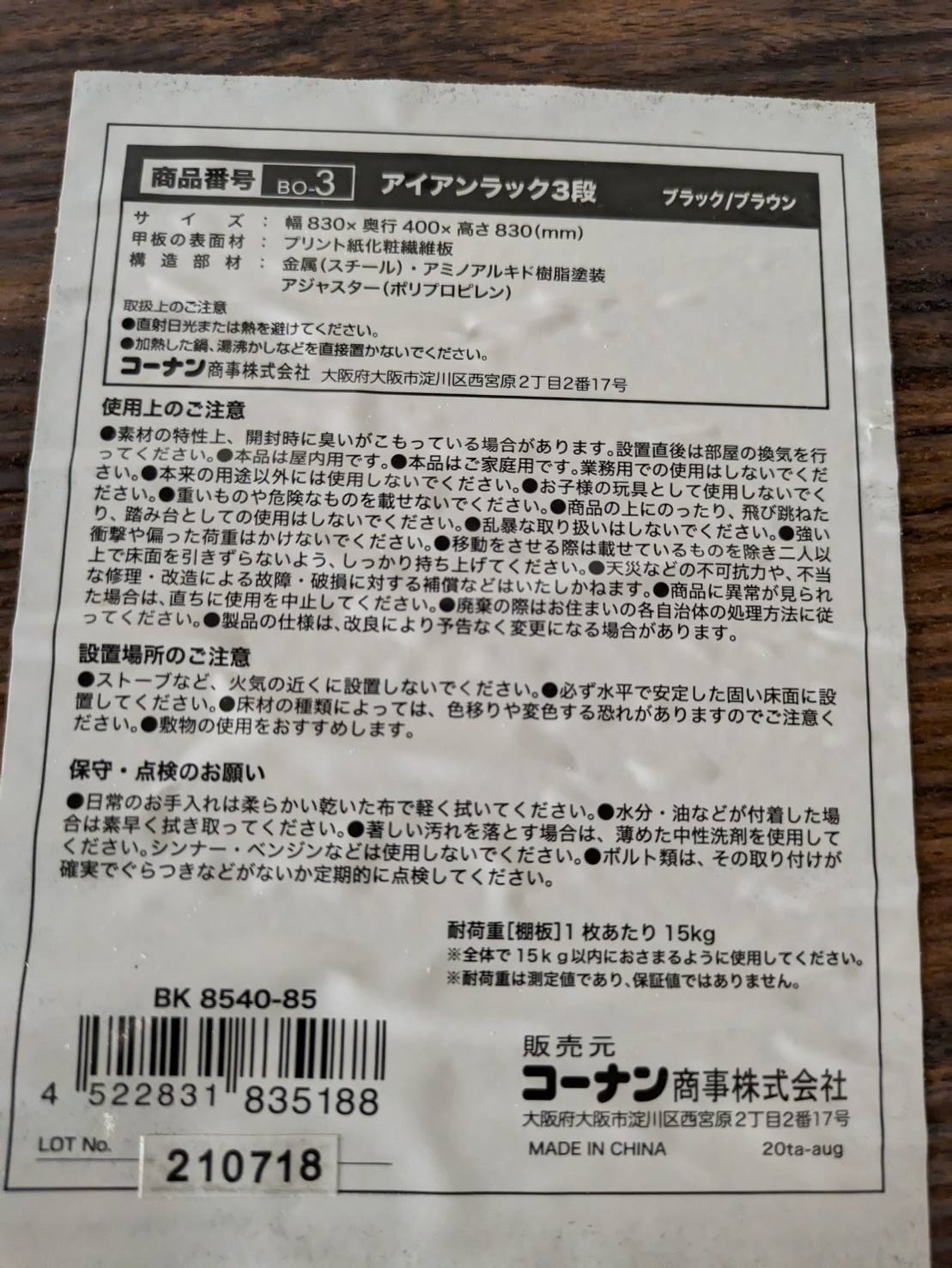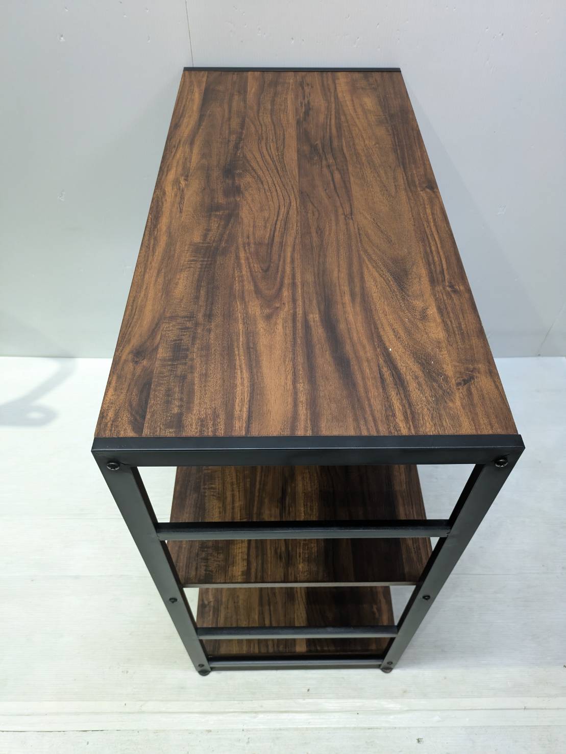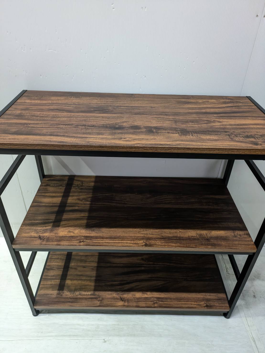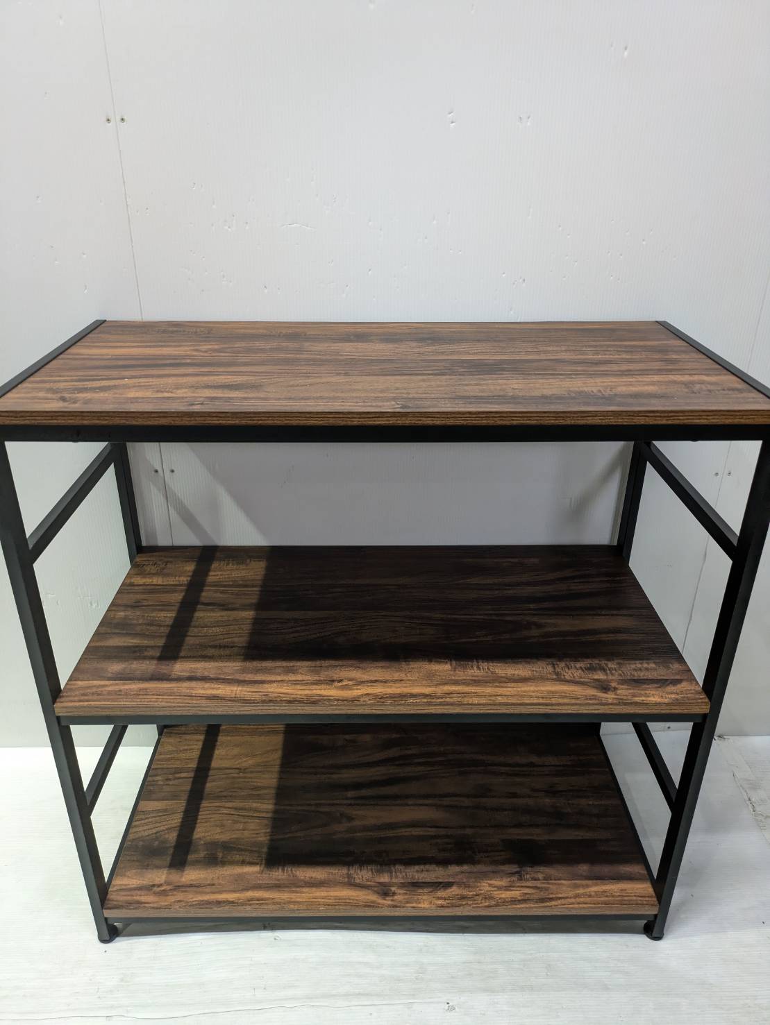 しっかりとした造りの3段ラックです。フレームは金属製、棚は木製です。一番上の木板に小傷とうっすらと水ぶくれがあります。 コーナン アイアンラック3段 幅*奥行*高さ 83*40*83㎝ 評価ランク B