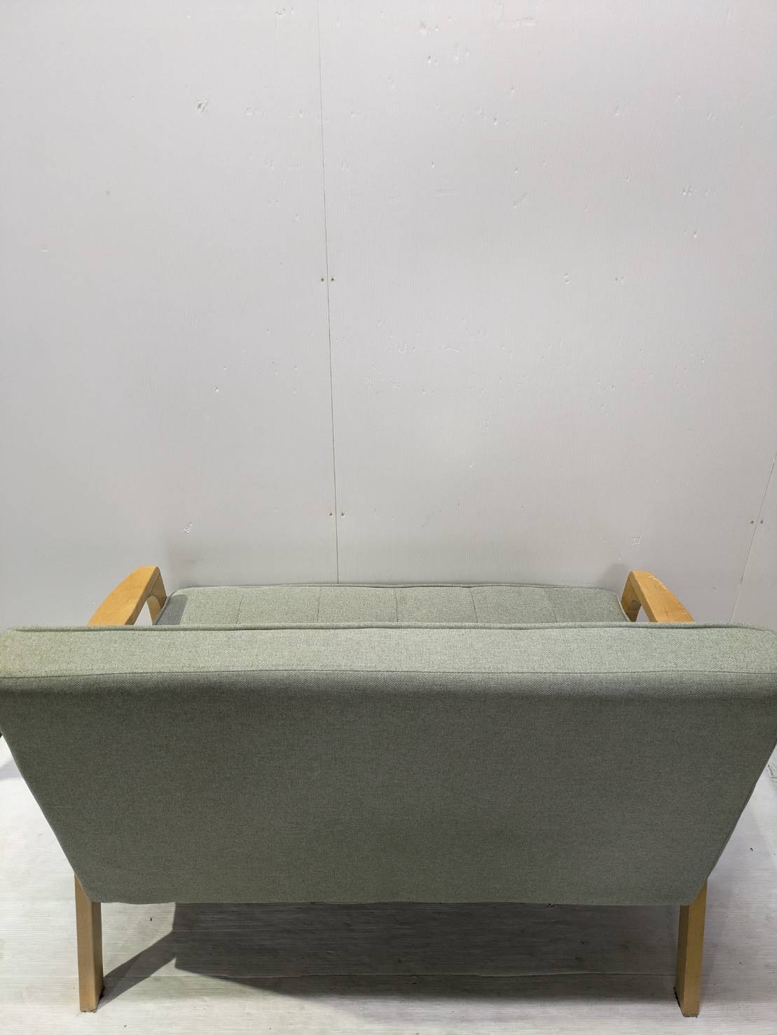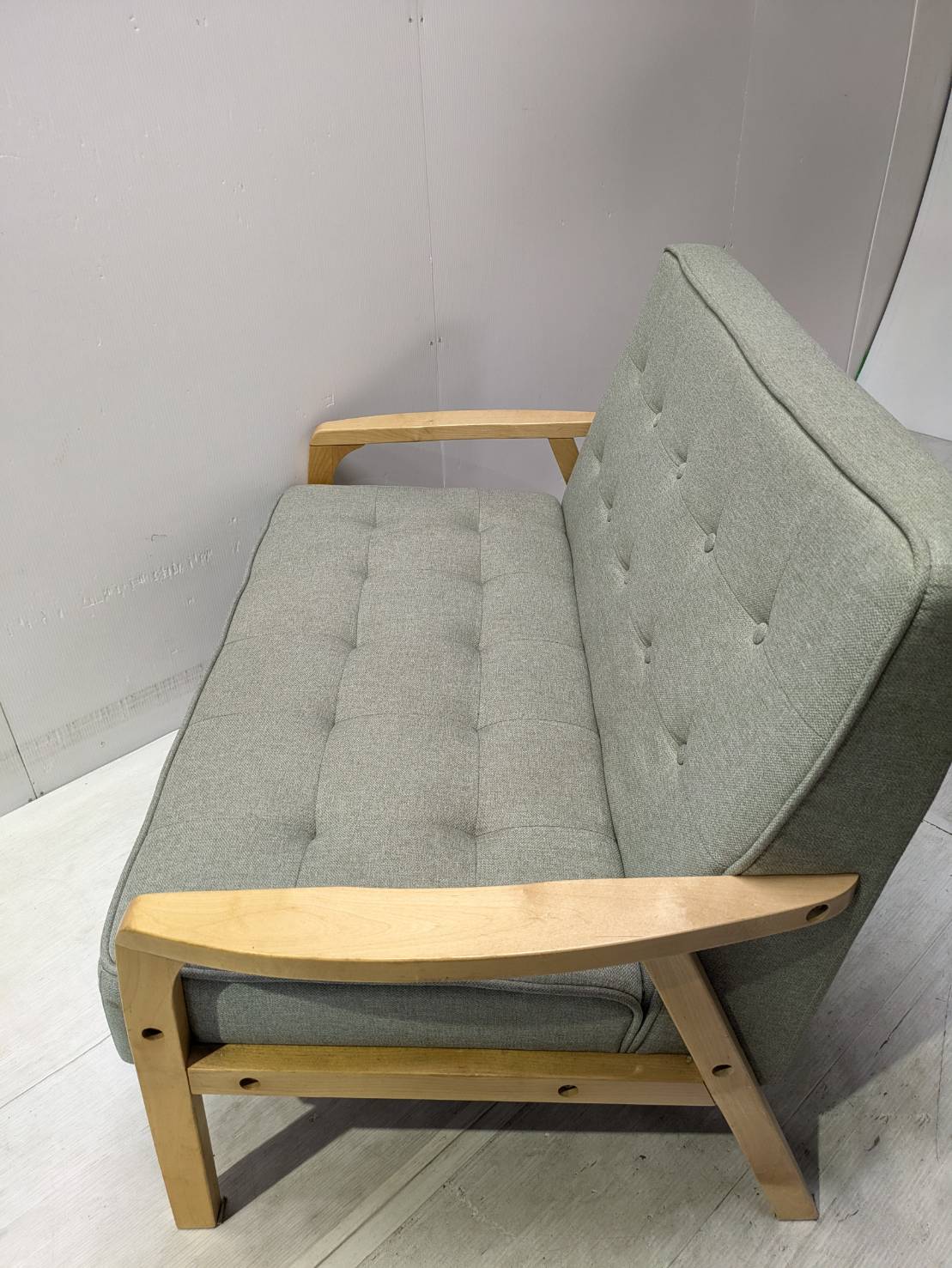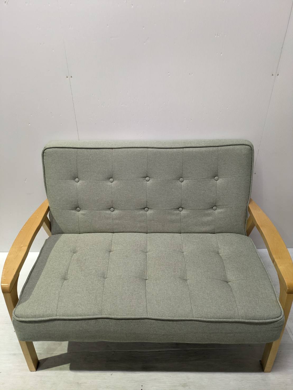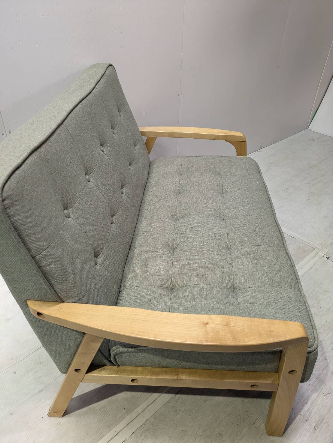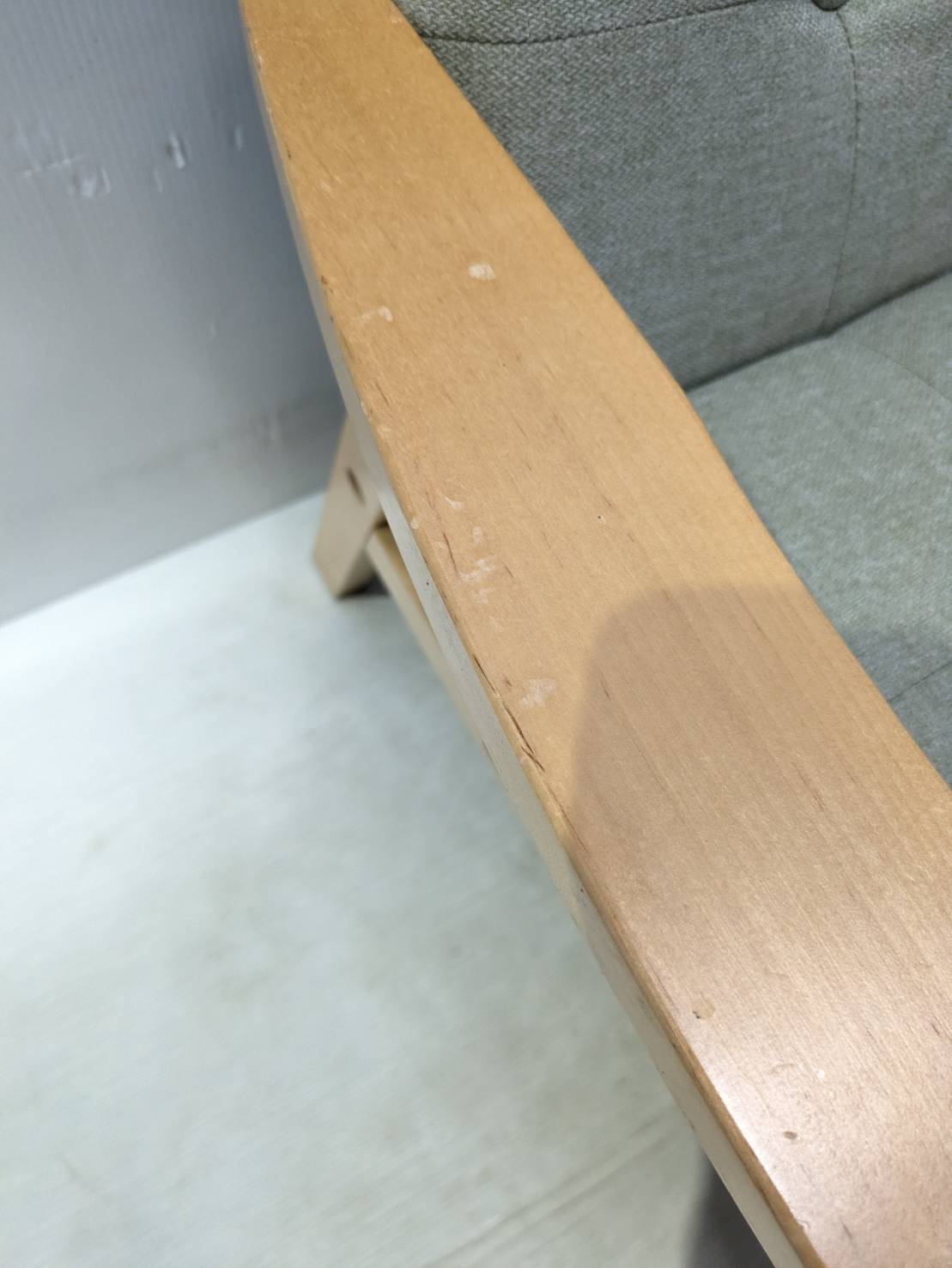 肘掛の部分に擦り傷が見られます。ニトリの2人掛け、天然木フレームのかわいいソファです。 ニトリ 天然木フレームの2Pソファ HILL2 サイズ 幅×奥行×高さ 116*69*78㎝ 評価ランク B+