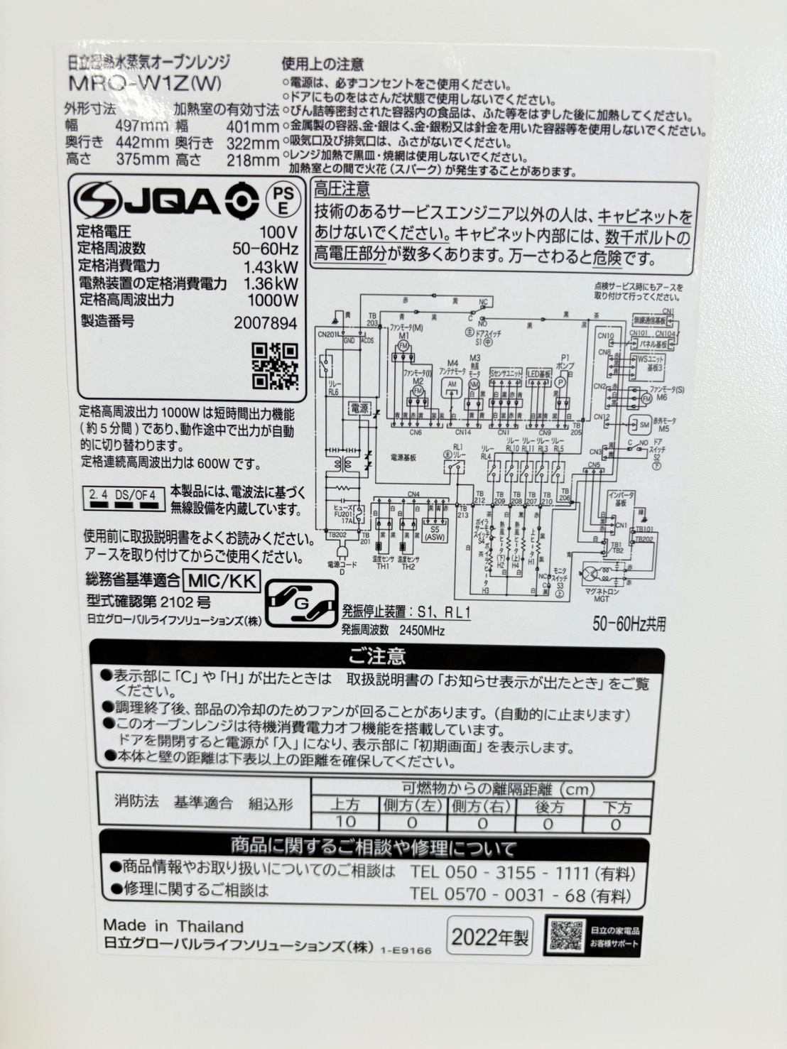 HITACHI2022年製オーブンレンジ MRO-W1Z