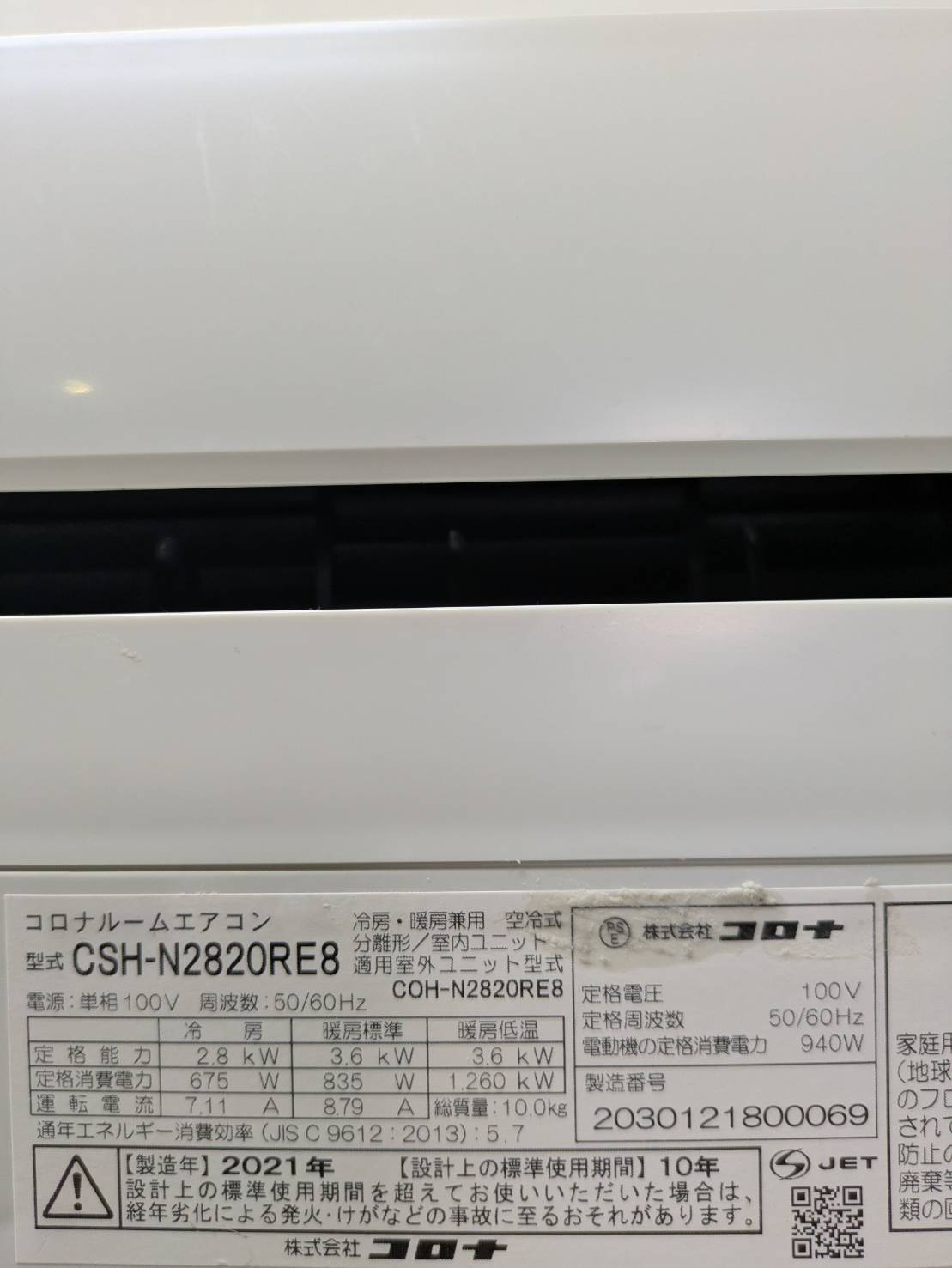 CORONA2021年製10畳エアコン CSH-N2820RE8