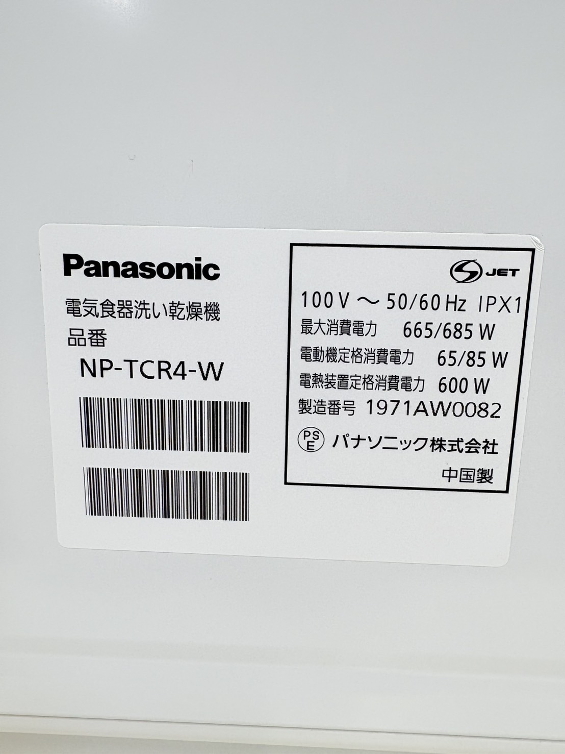 Panasonic2019年製食器洗い乾燥機 NP-TCR4-W