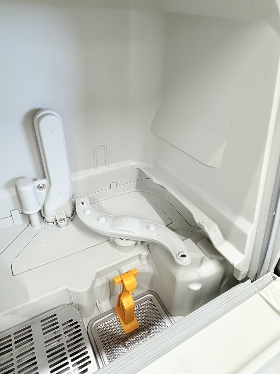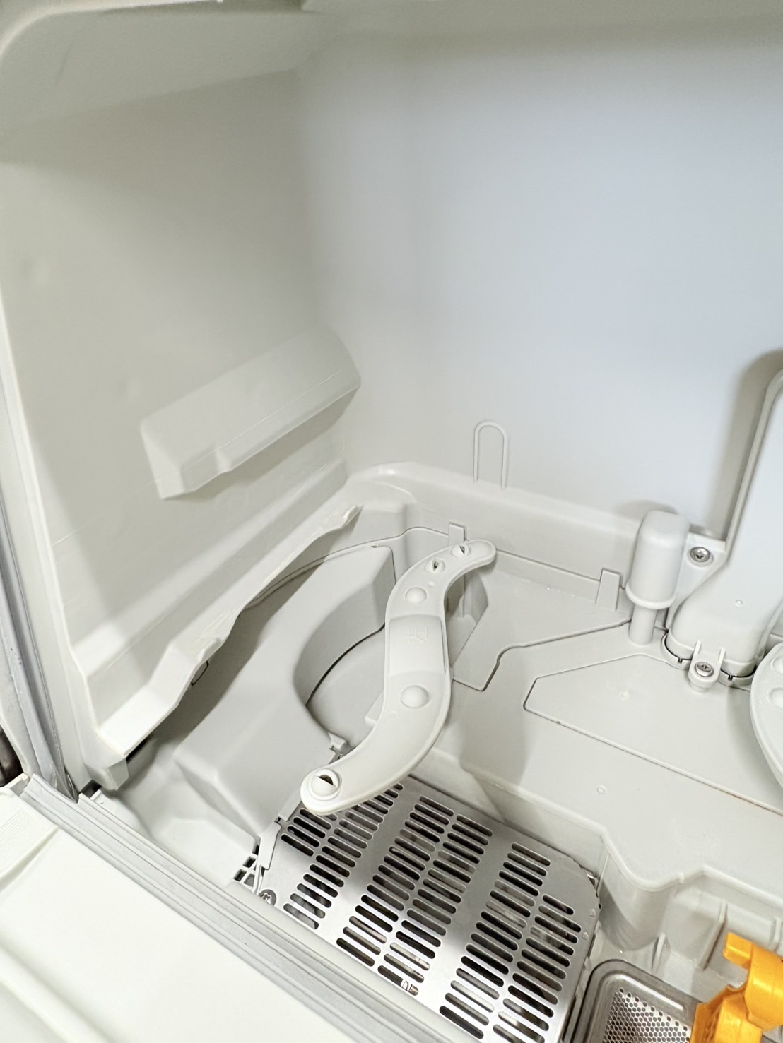水切りかごのスペースに設置できるコンパクト設計で、3人分の食器(食器18点、小物12点)が入る食器洗い乾燥機。