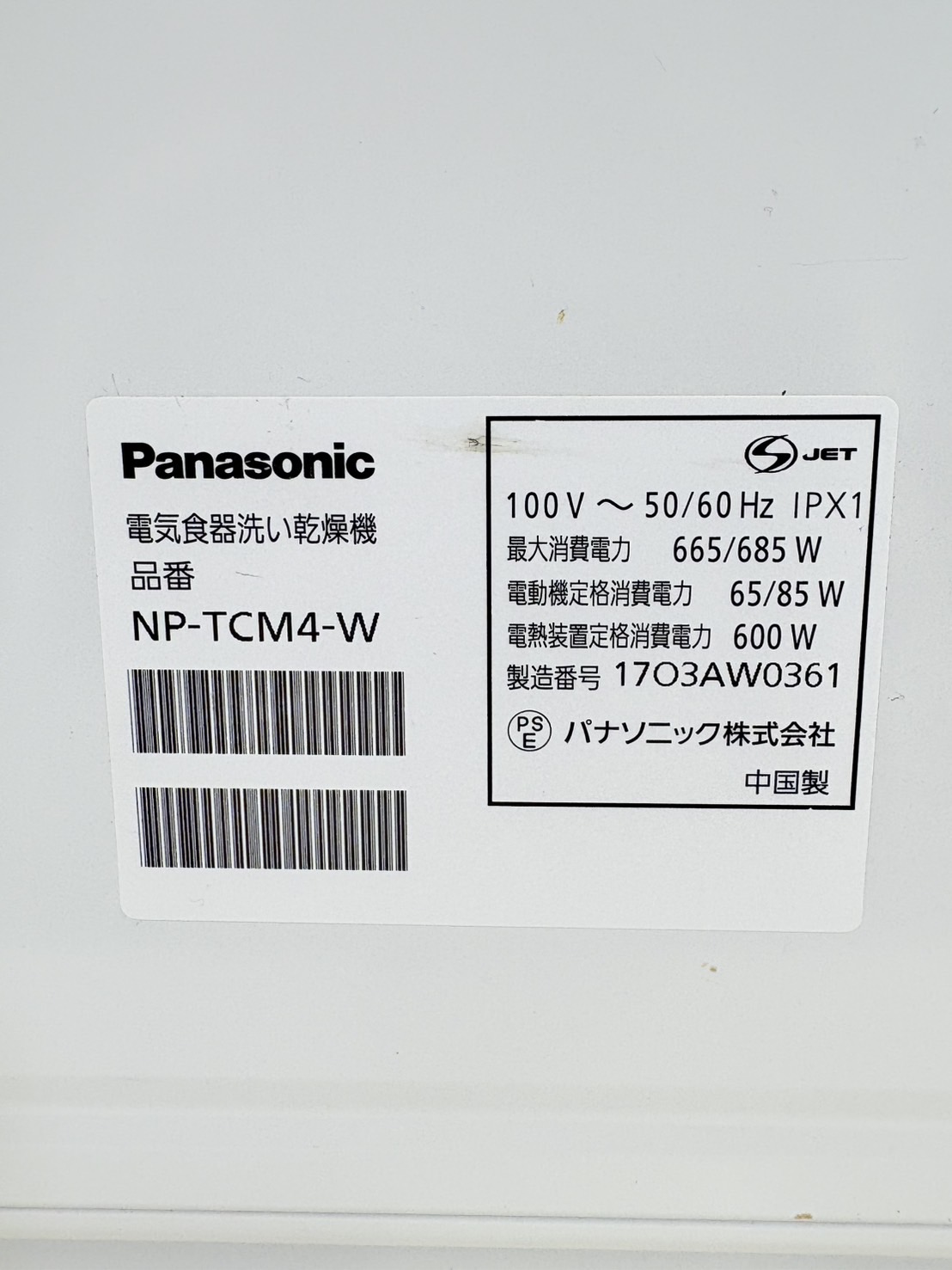 Panasonic2017年製食器洗い乾燥機 NP-TCM4-W
