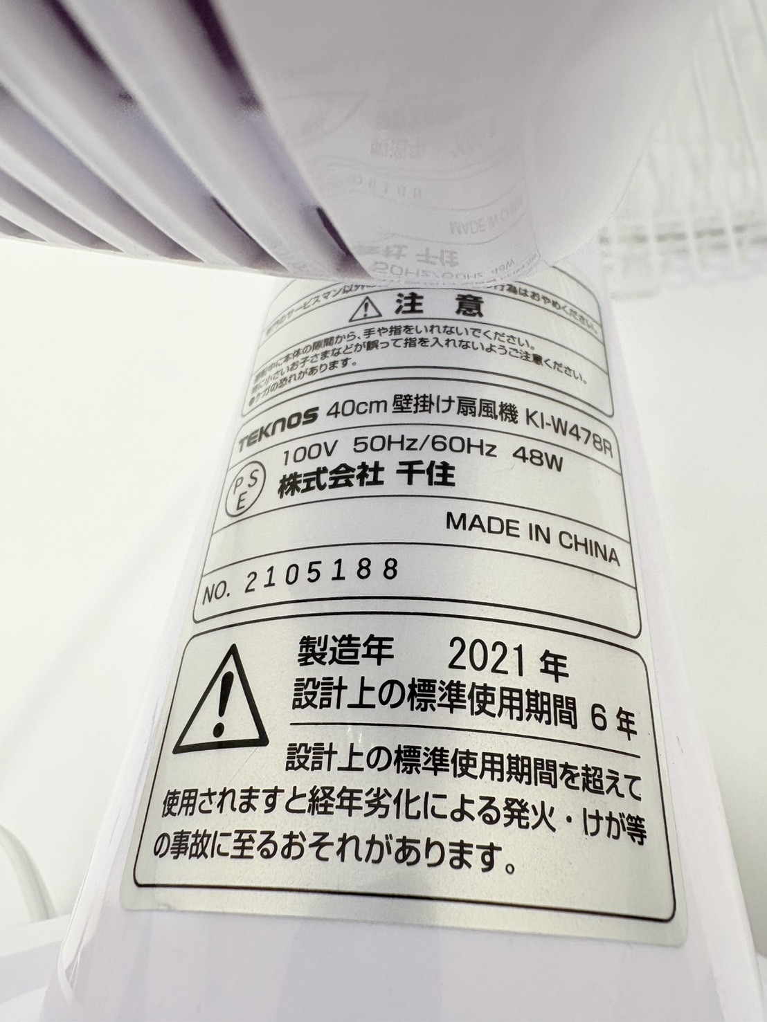 TEKNOS2021年製壁掛け扇風機 型番 KI-W478R 幅x高さx奥行き 430x490x400 mm Rank C 【コンデションなど】 壁掛けの金具、リモコンがありません。 【保証期間】 商品到着から2カ月