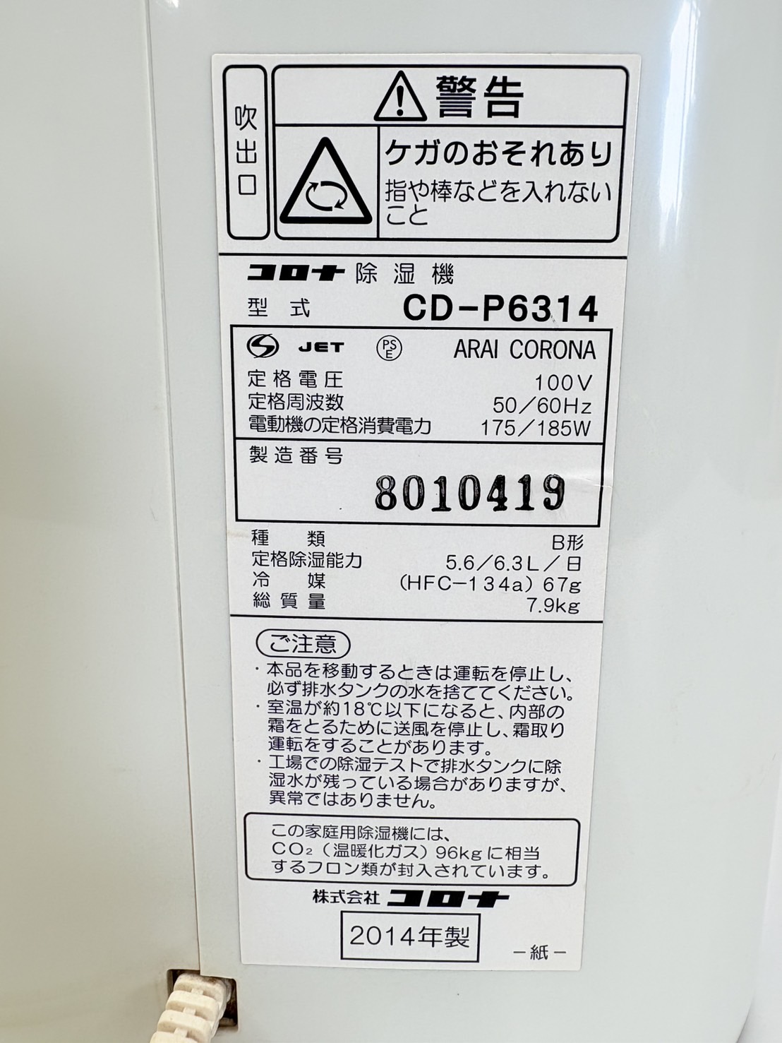 除湿能力	木造:7畳 / 鉄筋:14畳