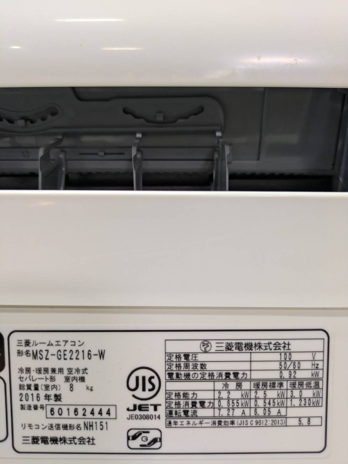 三菱電機2016年製6畳エアコン MSZ-GE2216
