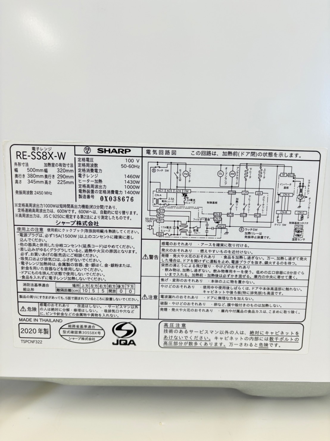 SHARP2020年製オーブンレンジ RE-SS8X-W