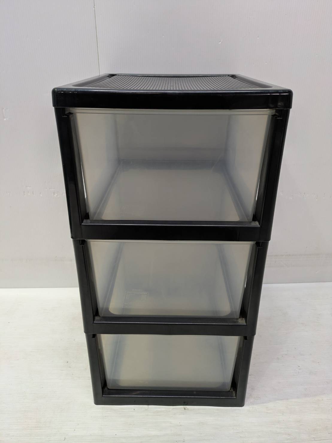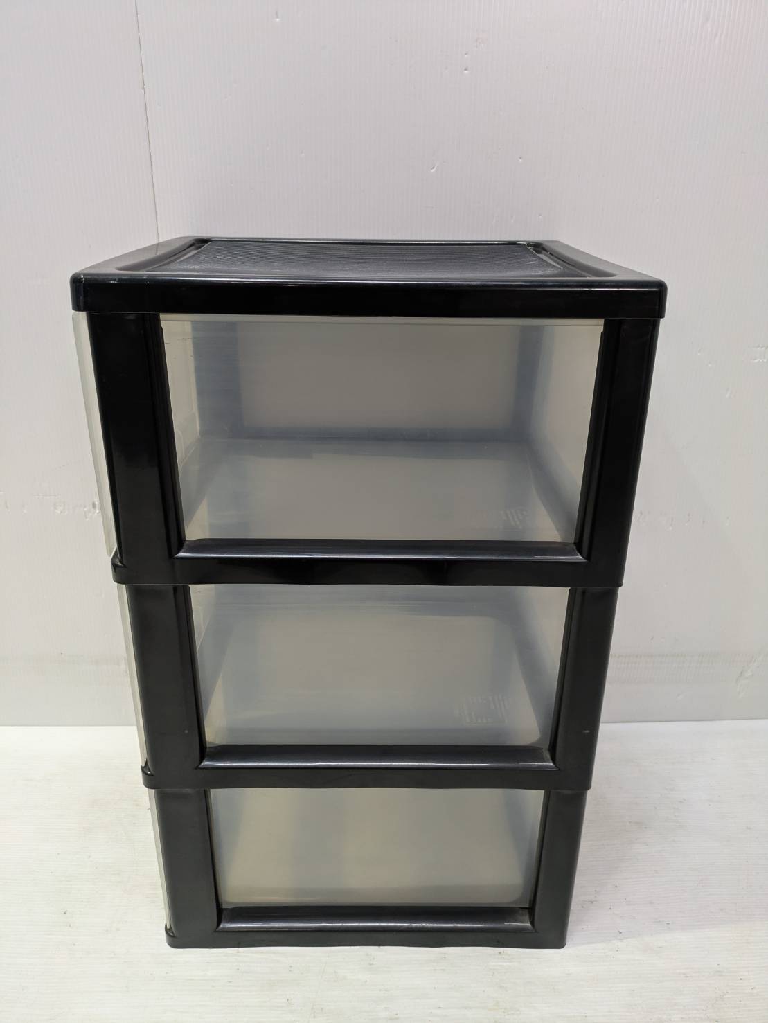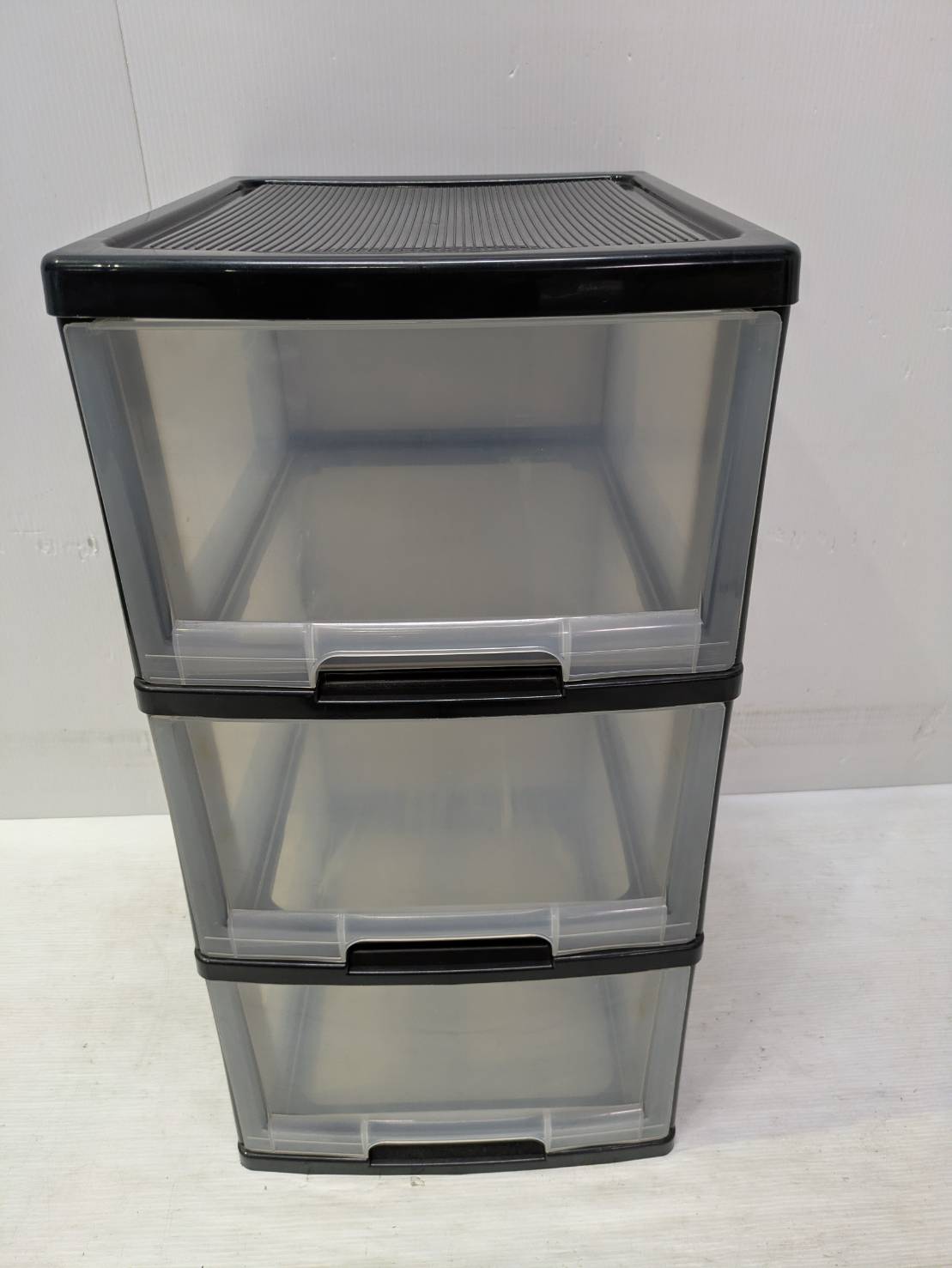 引き出し式の3段プラスチックケースです。衣類や洗剤、その他いろんな物の収納に役立ちます。 3段プラスチック衣装ケース サイズ 幅×奥行×高さ 33*40*65cm 評価ランク B