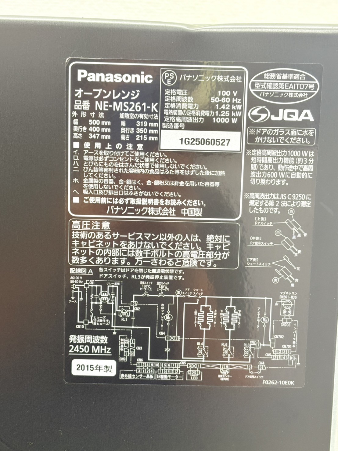 Panasonic2015年製オーブンレンジ NE-MS261-K