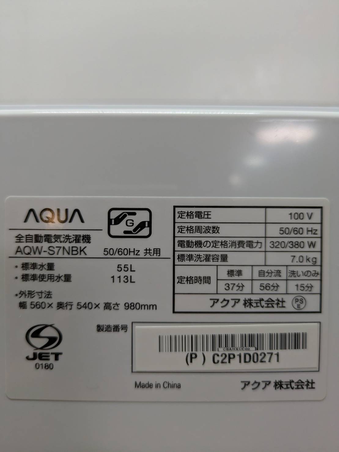 AQUA2023年製7.0Kg洗濯機 型番 AQW-S7NBK 幅*奥行*高さ 560*540*980㎜ 動作テスト 洗い・すすぎ・脱水OK 評価ランク A 内部分解清掃済 【コンデションなど】 洗濯槽の縁に擦り傷がございますが、他は目立って大きな傷もなくキレイです。 【製品特徴】 グラストップでお洗濯中も洗い物が確認できる。スリムでスタイリッシュなフォルムの洗濯機。ステンレス層で黒カビをシャットアウト。 【保証期間】 商品到着から6カ月
