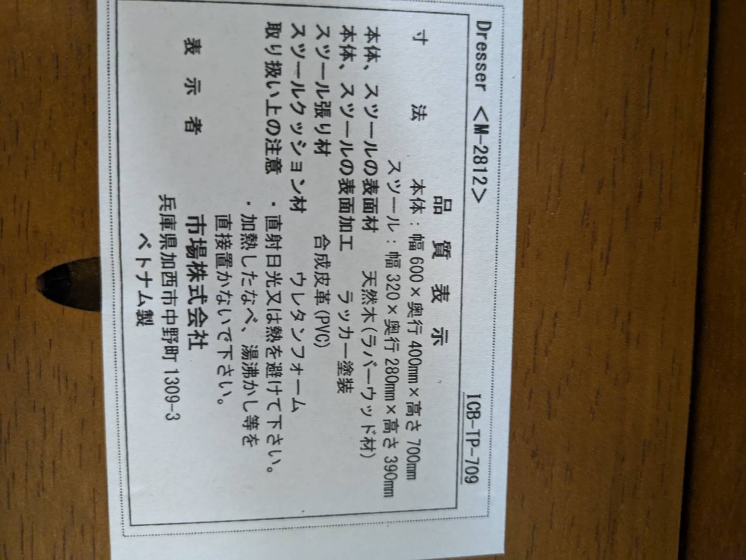 ヴィンテージ風スツール付天然木ドレッサー 型番:M-2812 幅*奥行*高さ(およそ) 600*400*700mm 評価ランク B 【コンデションなど】 ドレッサー本体向かって右上の端にキズがございます。 【製品特徴】 ヴィンテージ風の天然木素材のしっかりとした造りのドレッサーです。ミニサイズで可愛いサイズ。ヴィンテージ風のスツールもセットでの販売です。 【参考サイト】 https://store.shopping.yahoo.co.jp/comodocasa/800-m-3647br.html