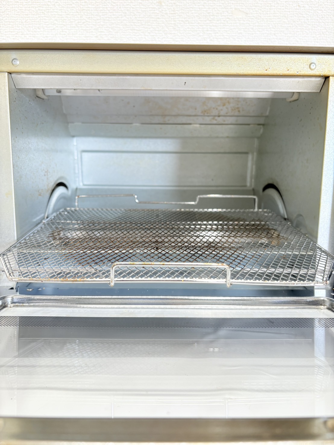 庫内奥行き22cmで、山形パンが2枚焼け、グラタン皿も縦に2皿置けて、8インチ(20cm)のピザが切らずに焼ける。