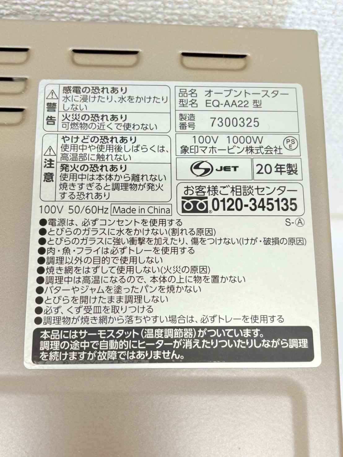 象印2020年製オーブントースター