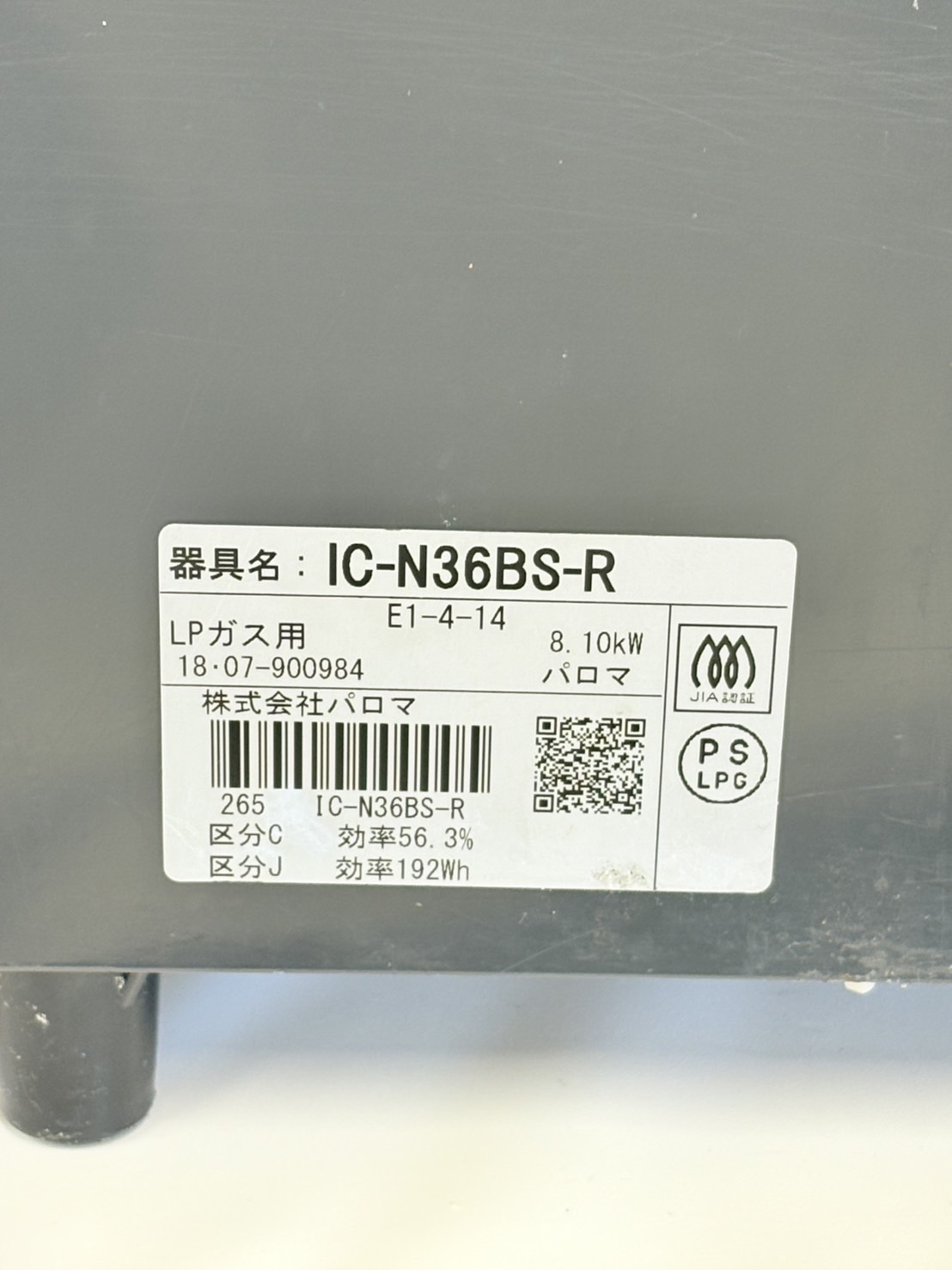 Paloma2018年製 【LPガス】IC-N36BS-R