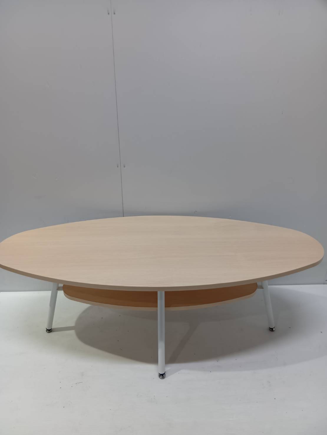 収納棚付きリビングテーブル 型番: LTS-1145 幅*奥行*高さ 幅110×奥行45×高さ39cm 評価ランク A 【コンデションなど】 小キズはございますが、目立って大きな傷はございません。 【製品特徴】 アイリスオーヤマ製の楕円形ローテーブル。奥行が狭いため比較的狭いお部屋にも丁度良い形のテーブルです。