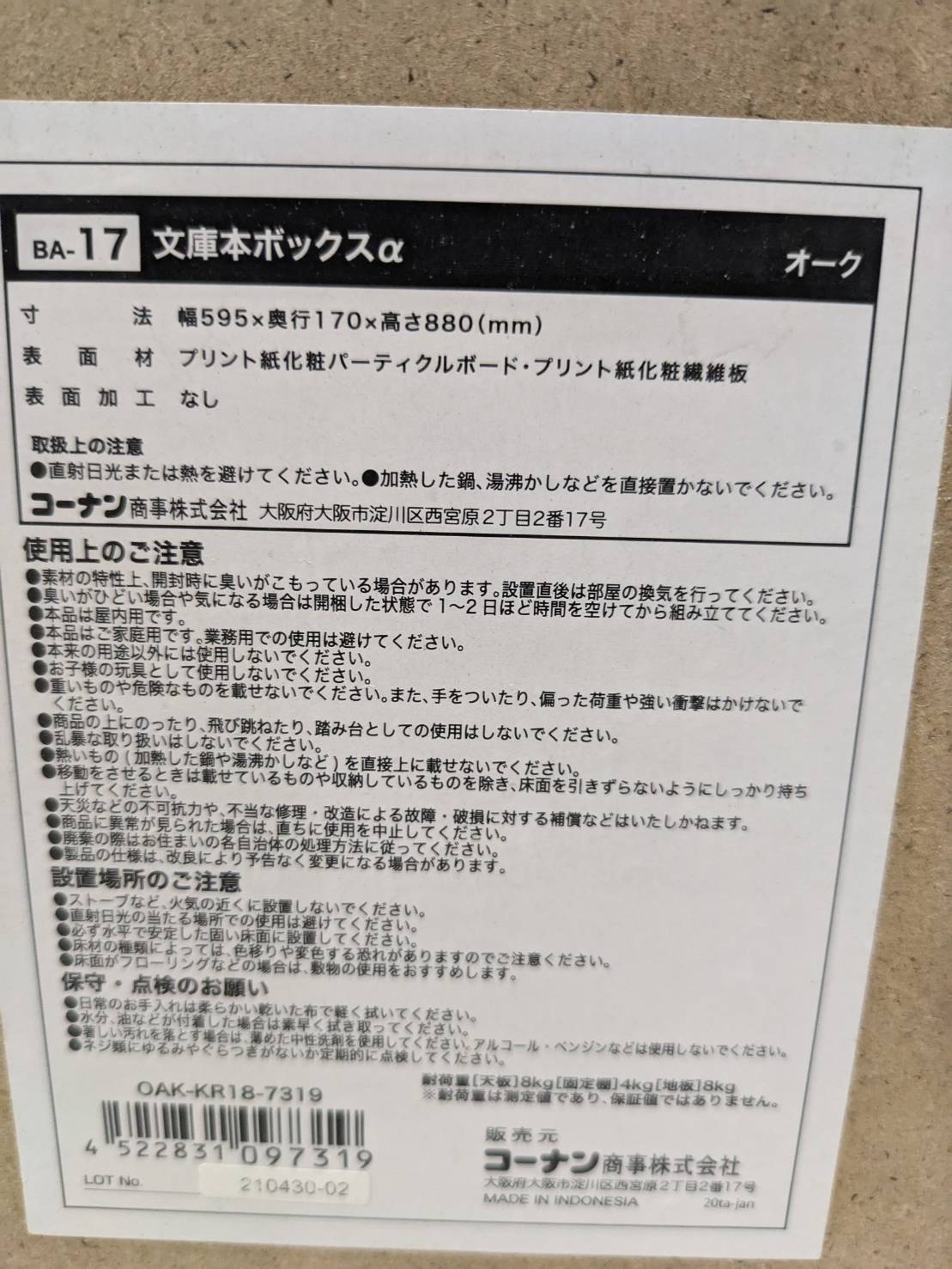 天板の端にきずがあります。他はキレイです。主に文庫収納用の本棚です。 コーナン 文庫ボックス60cm 幅*奥行*高さ 60*17*88㎝ 評価ランク B