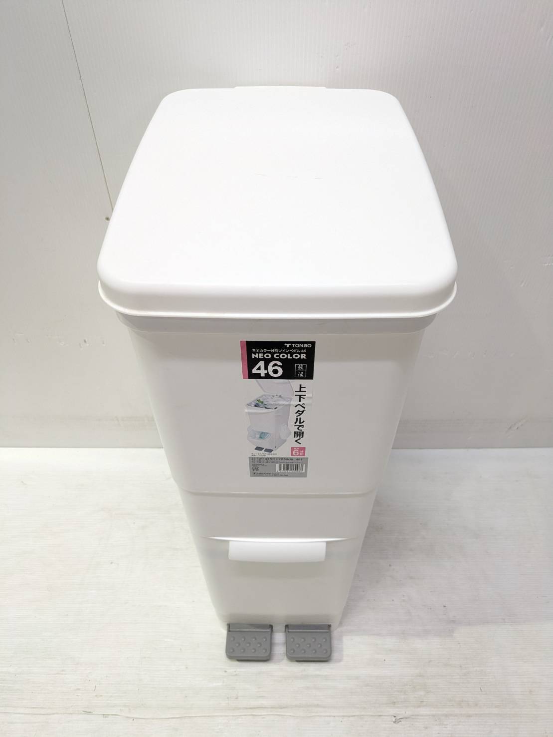上下ペダル式で開閉できて楽にゴミ捨てができるプラスチック製のごみ箱です。 TONBO ツインペダル式ダストボックス 幅*奥行*高さ 80*29*43㎝ 評価ランク A