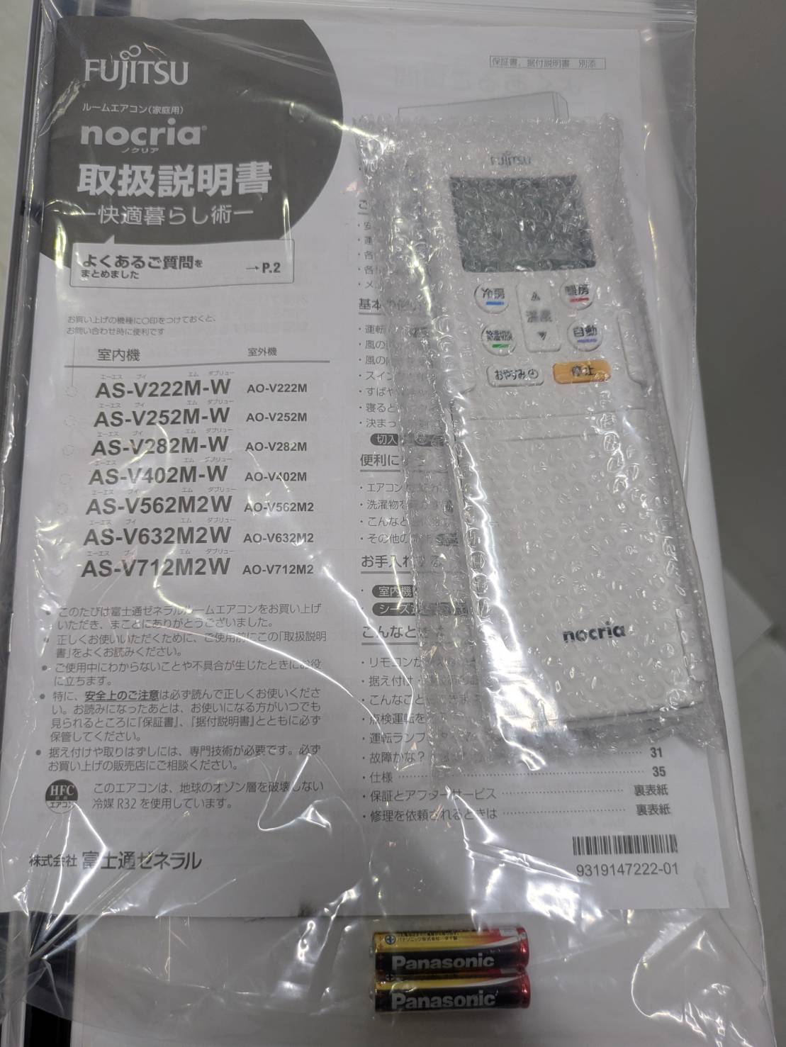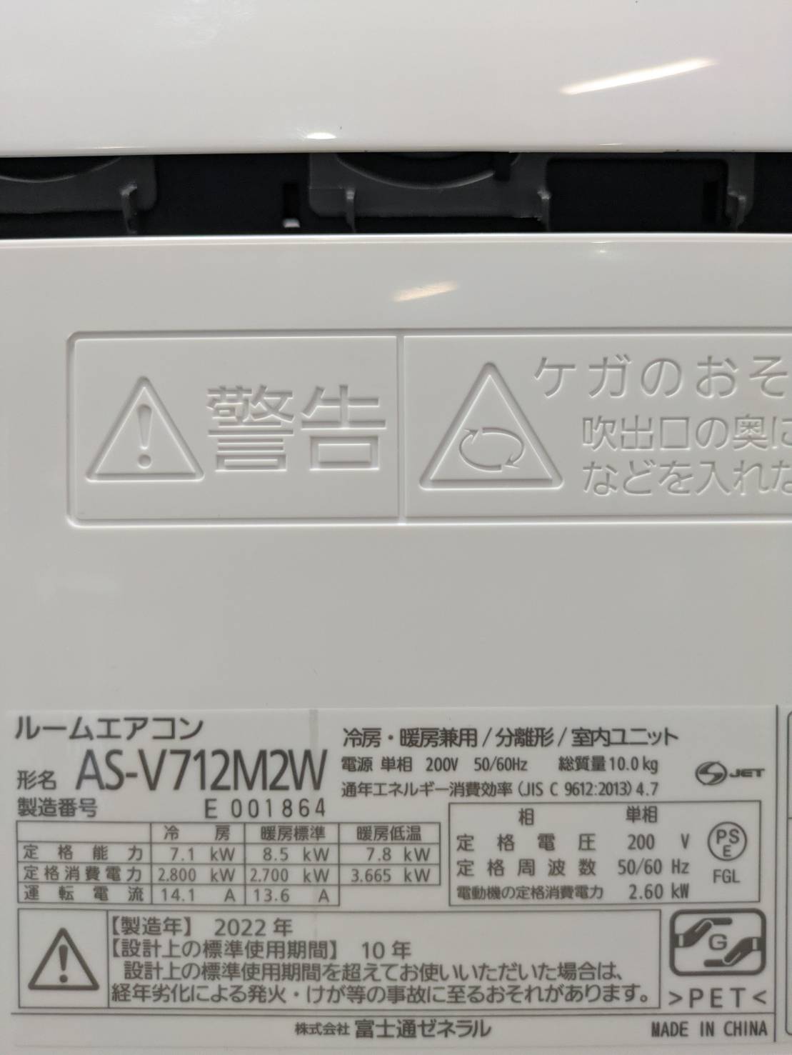 Fujitsu2022年製23畳エアコン AS-V712M2W