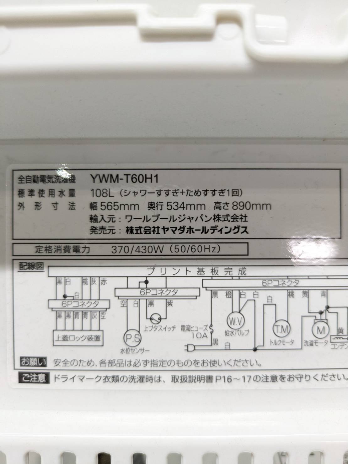 YAMADA2021年製6Kg洗濯機 YWM-T60H1