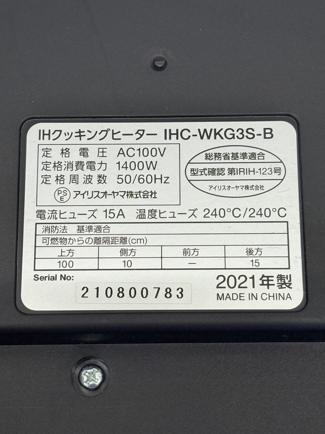 アイリス2021年製2口IHコンロ IHC-WKG3S-B