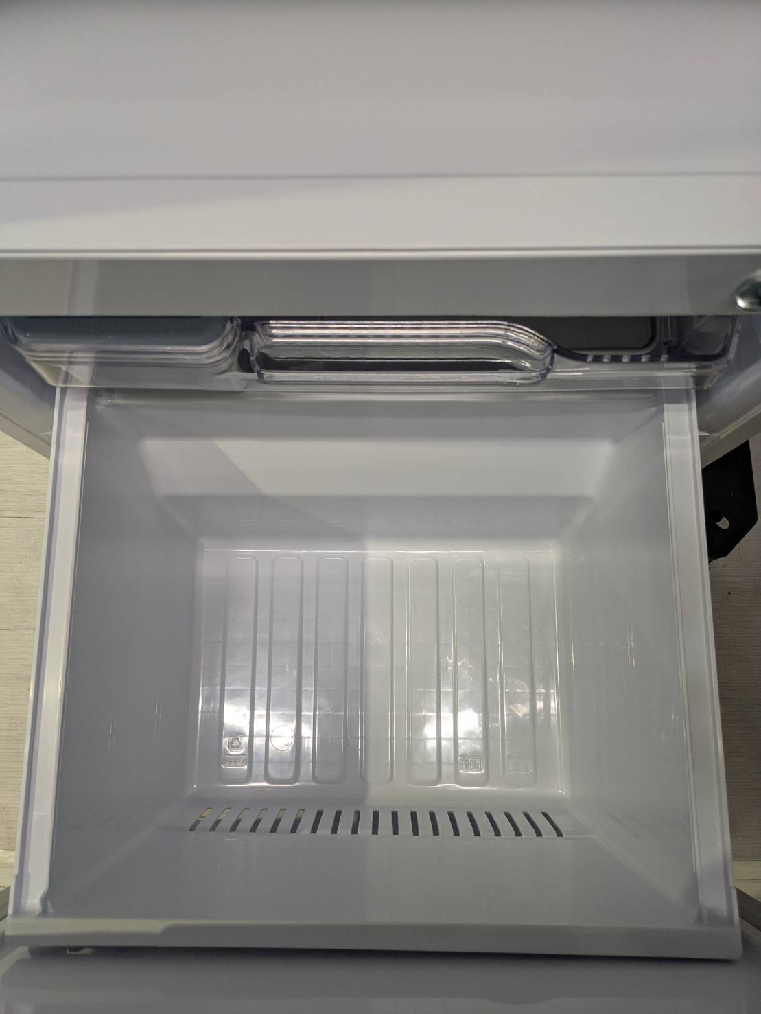 4段ガラスシェルフでたくさんの食材を収納できる。冷蔵室だけで122Lあるので一人暮らしにゆとりがあるサイズ。霜取り不要の強制循環式冷蔵庫。