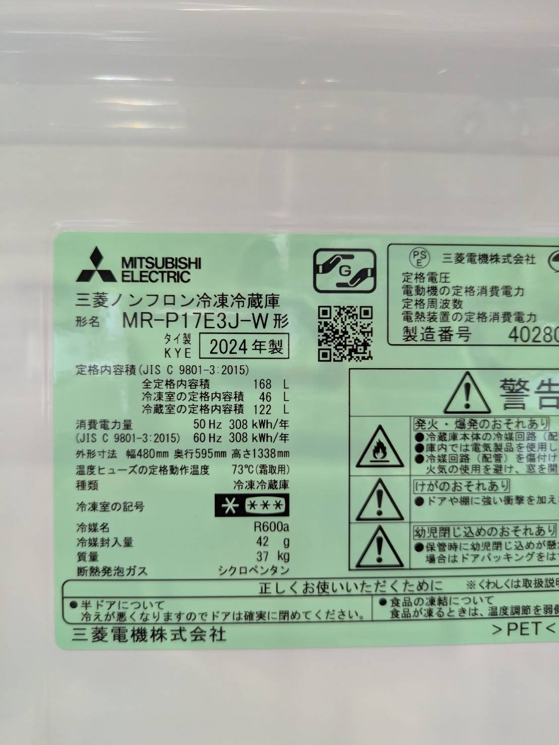 三菱電機2024年製168L冷蔵庫 MR-P17E3J