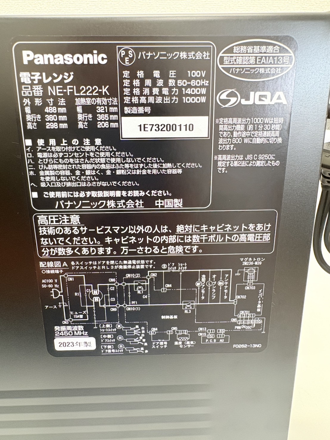 Panasonic2023年製電子レンジ NE-FL222-K