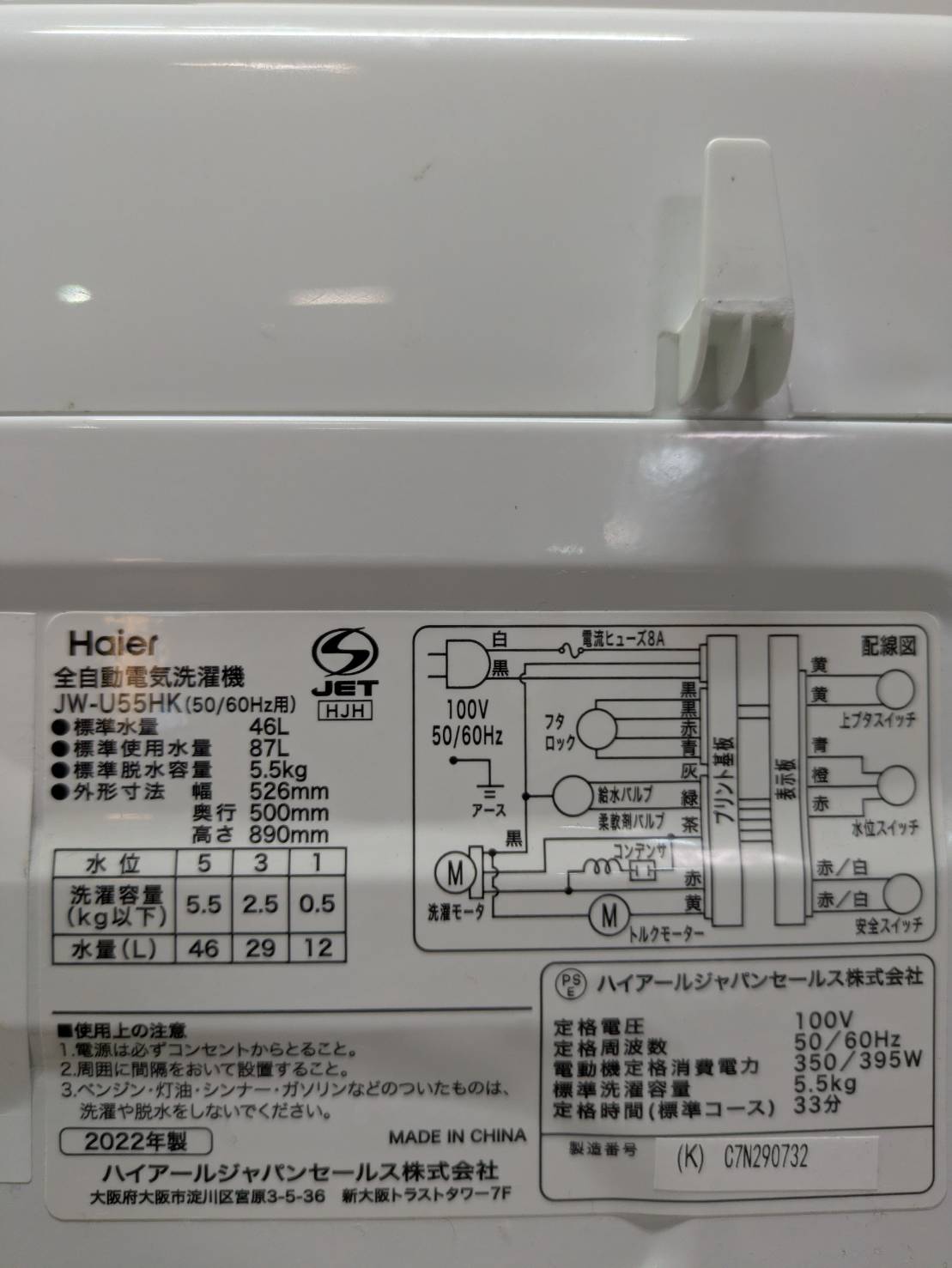 Haier2022年製5.5Kg洗濯機