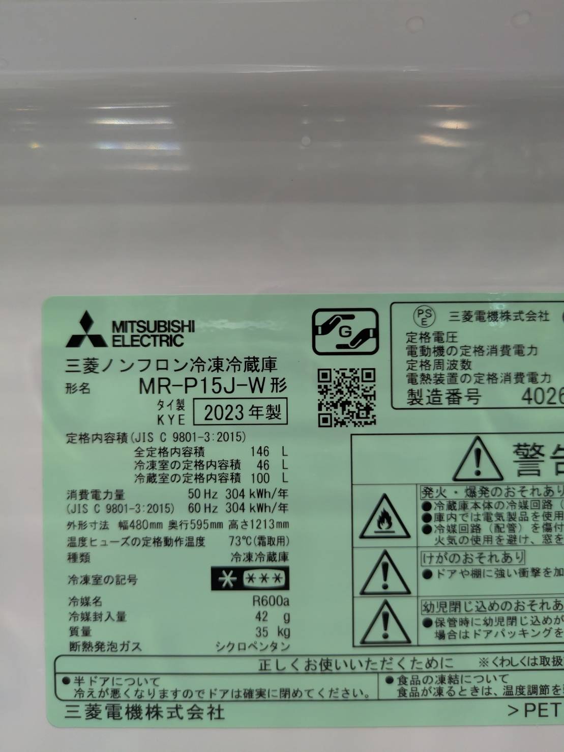 三菱電機2023年製146L冷蔵庫 MR-P15J