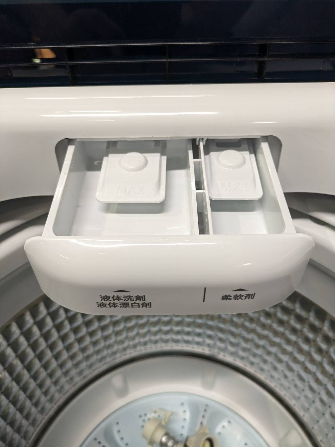 洗剤を直接洗濯槽に入れずに一時ストックできる引き出し式洗剤ケース搭載。