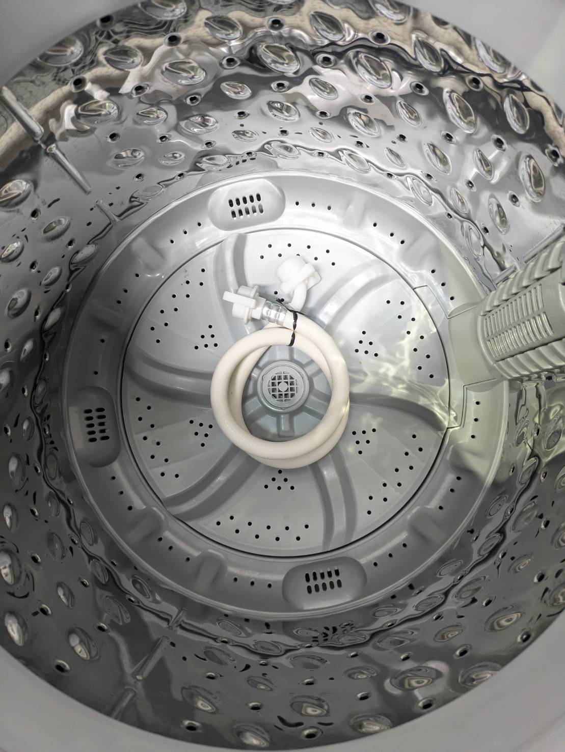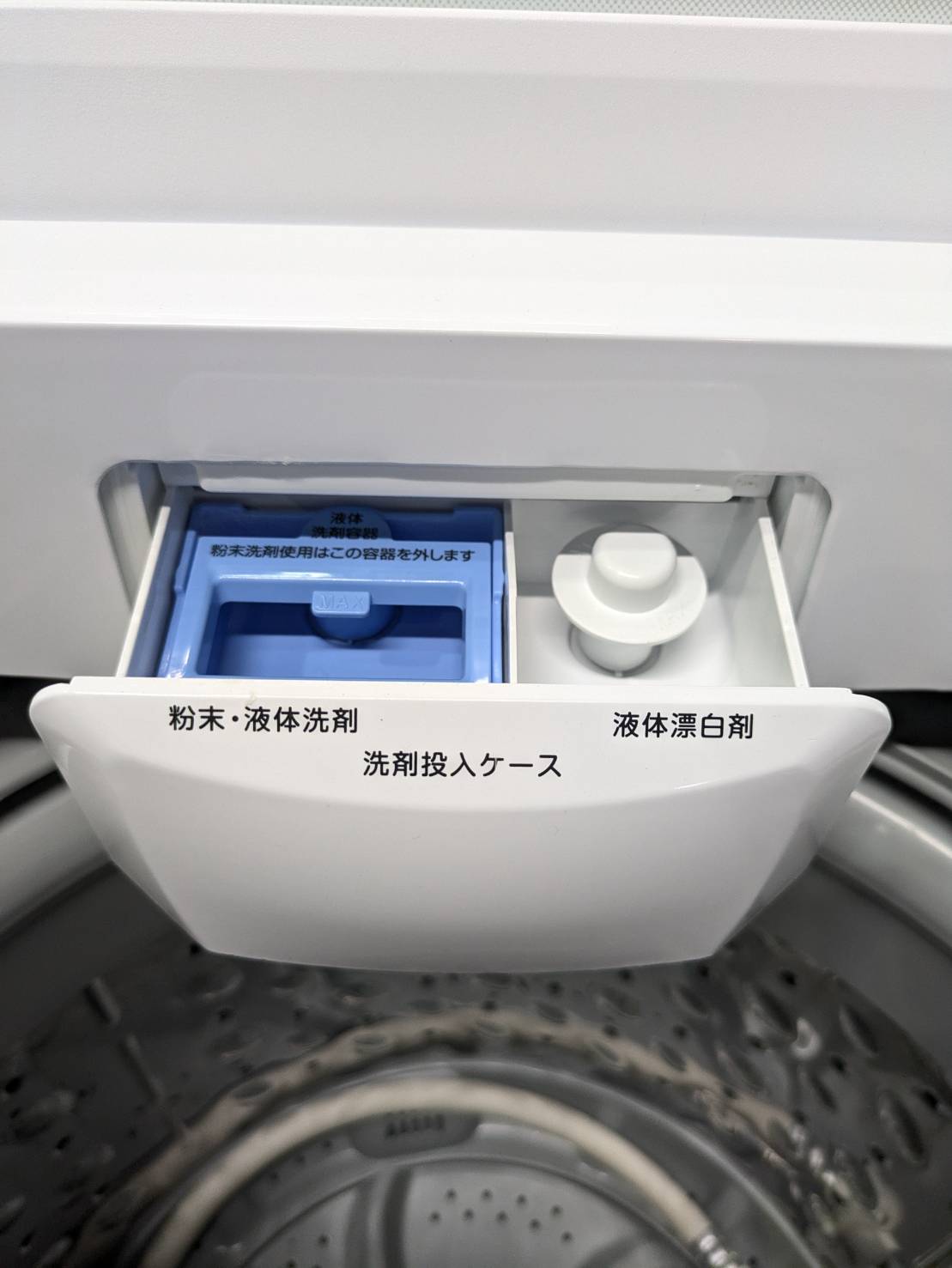 スケルトングラスのデザイン性の高い洗濯機です。お洗濯中に中の洗い物を確認できる。洗剤の投入ケースを備えているので予約洗濯の際に役立ちます。