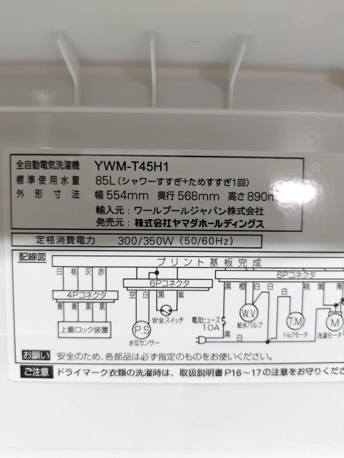 YAMADA2023年製4.5Kg洗濯機 YWM-T45H1