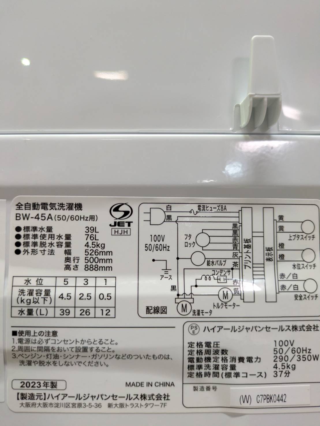 Haier2023年製4.5Kg洗濯機 BW-45A