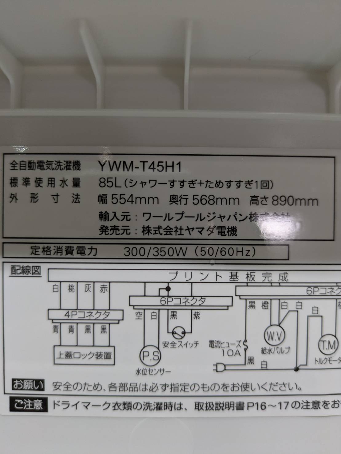 YAMADA2020年製4.5Kg洗濯機 YWM-T45H1