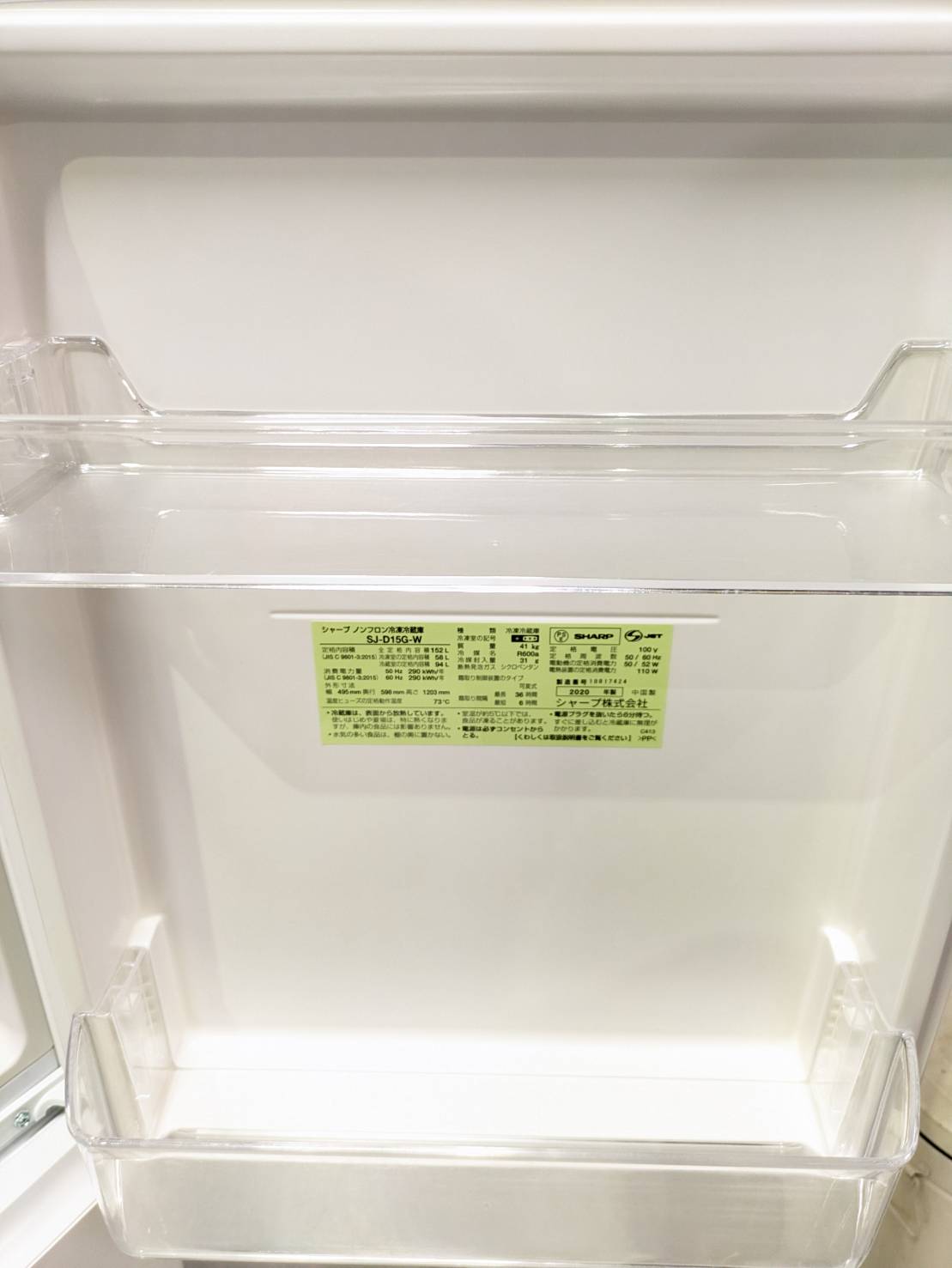 SHARP2020年製152L冷蔵庫 SJ-D15G