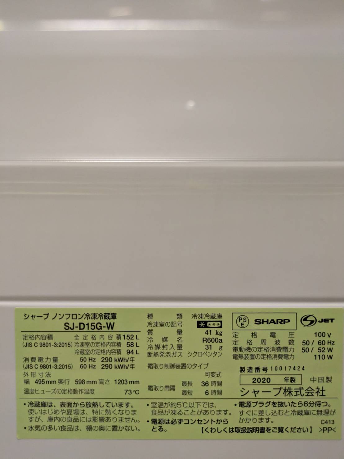 型番 SJ-D15G