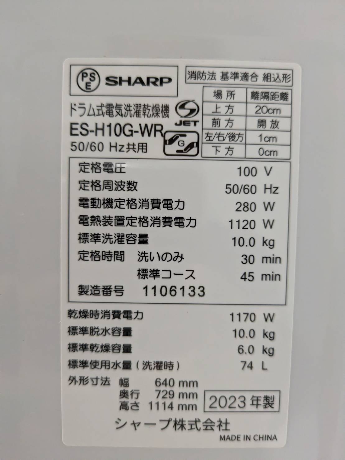 SHARP2023年製ドラム式洗濯乾燥機 ES-H10G