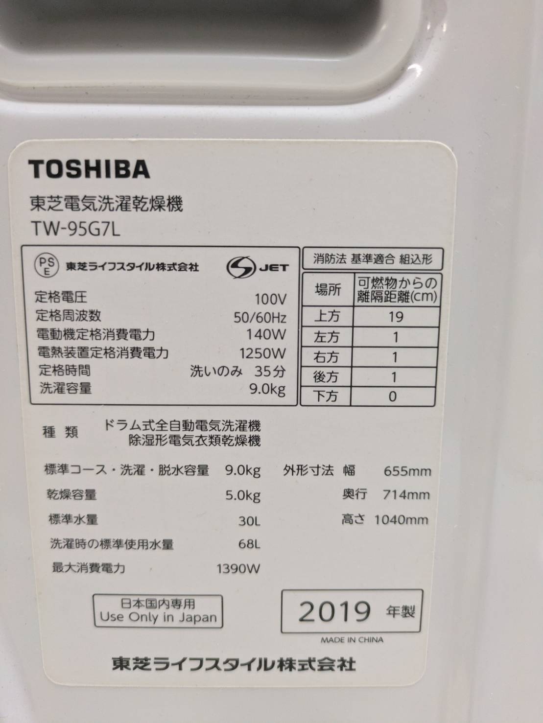 TOSHIBA2019年製ドラム式洗濯乾燥機 TW-95G7L