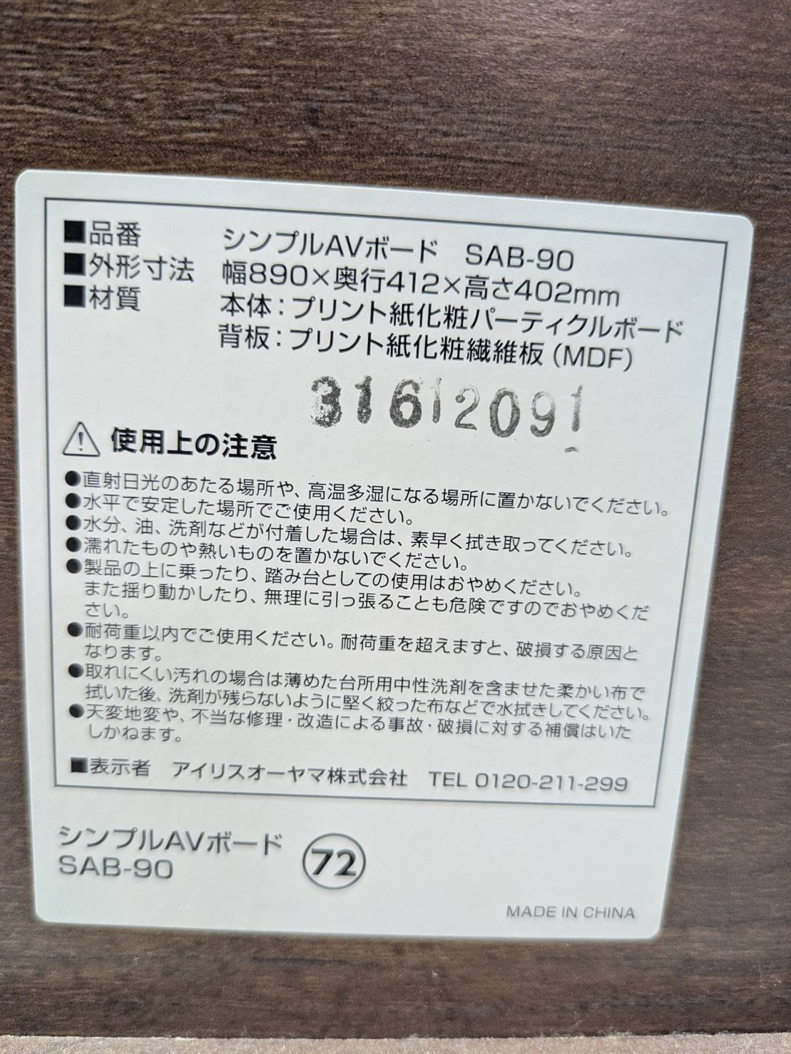 キズが複数ございます。画像をご確認ください。 アイリスオーヤマAVボード SAB-90 サイズ 幅×奥行×高さ 890*412*402mm 評価ランク C