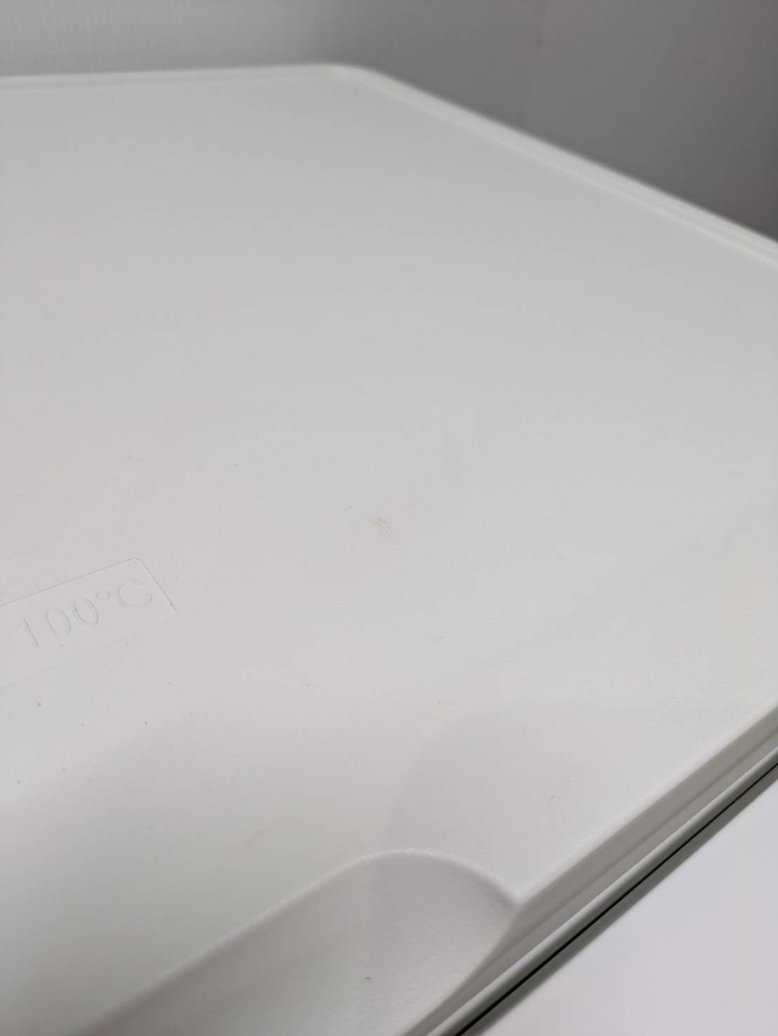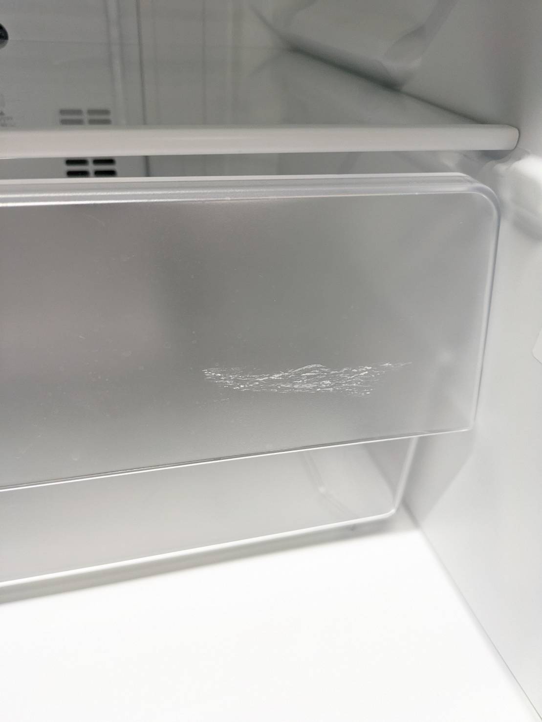 天板に小さなシミ、冷蔵室内の引き出しトレーにキズがございます。