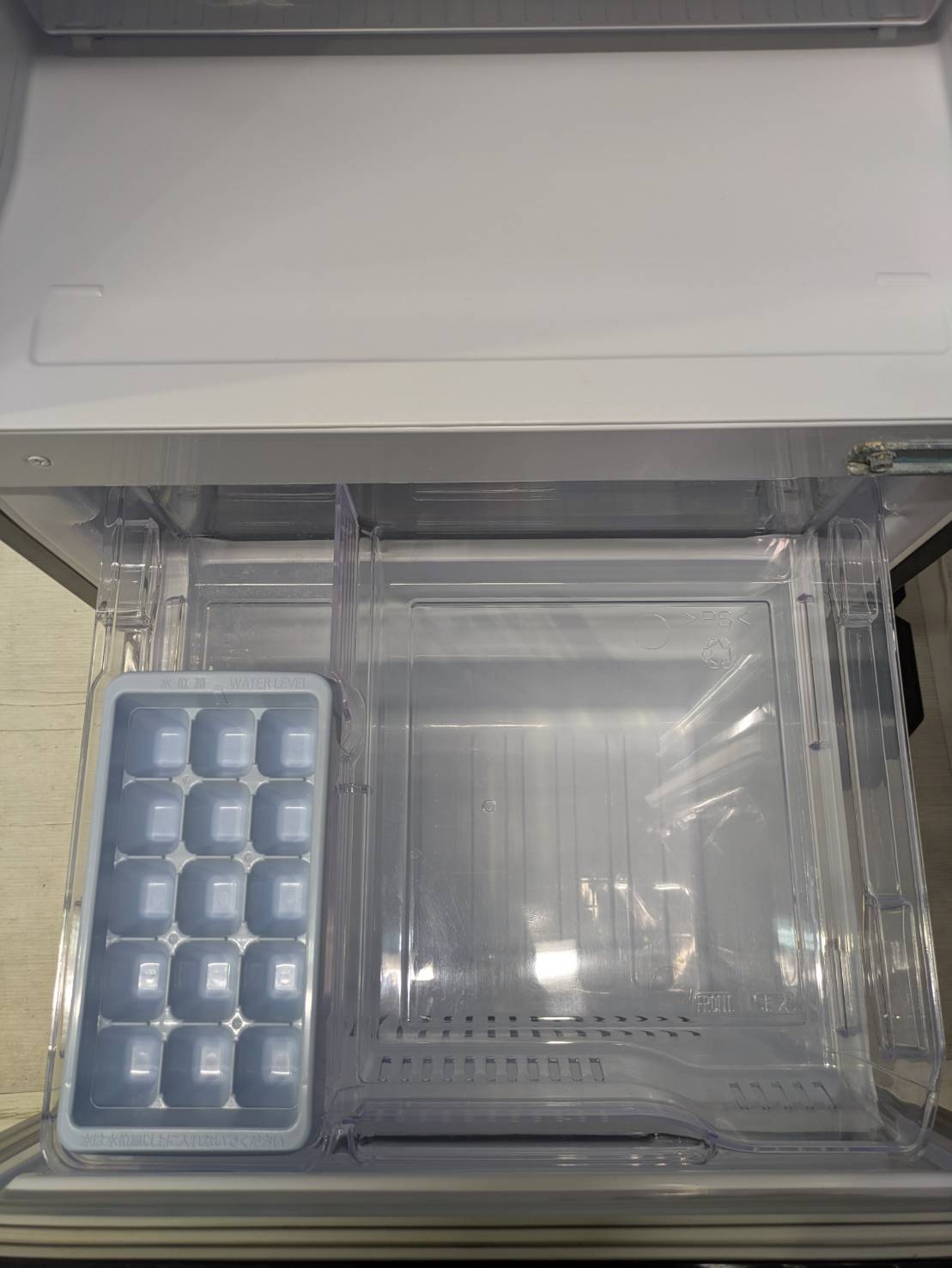 冷凍室は2段で、上段はカップアイスや薄物、下段は500mlのペットボトルや食パンなど背の高いものを収納できる。