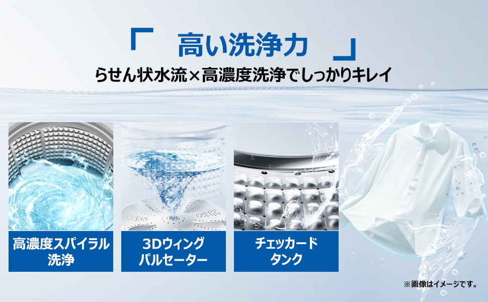 脱水モードにしわになりやすいブラウスやシャツに最適な「しわケア」「弱」を採用。干したときにしわが付きにくく、アイロンがけが楽にできる。