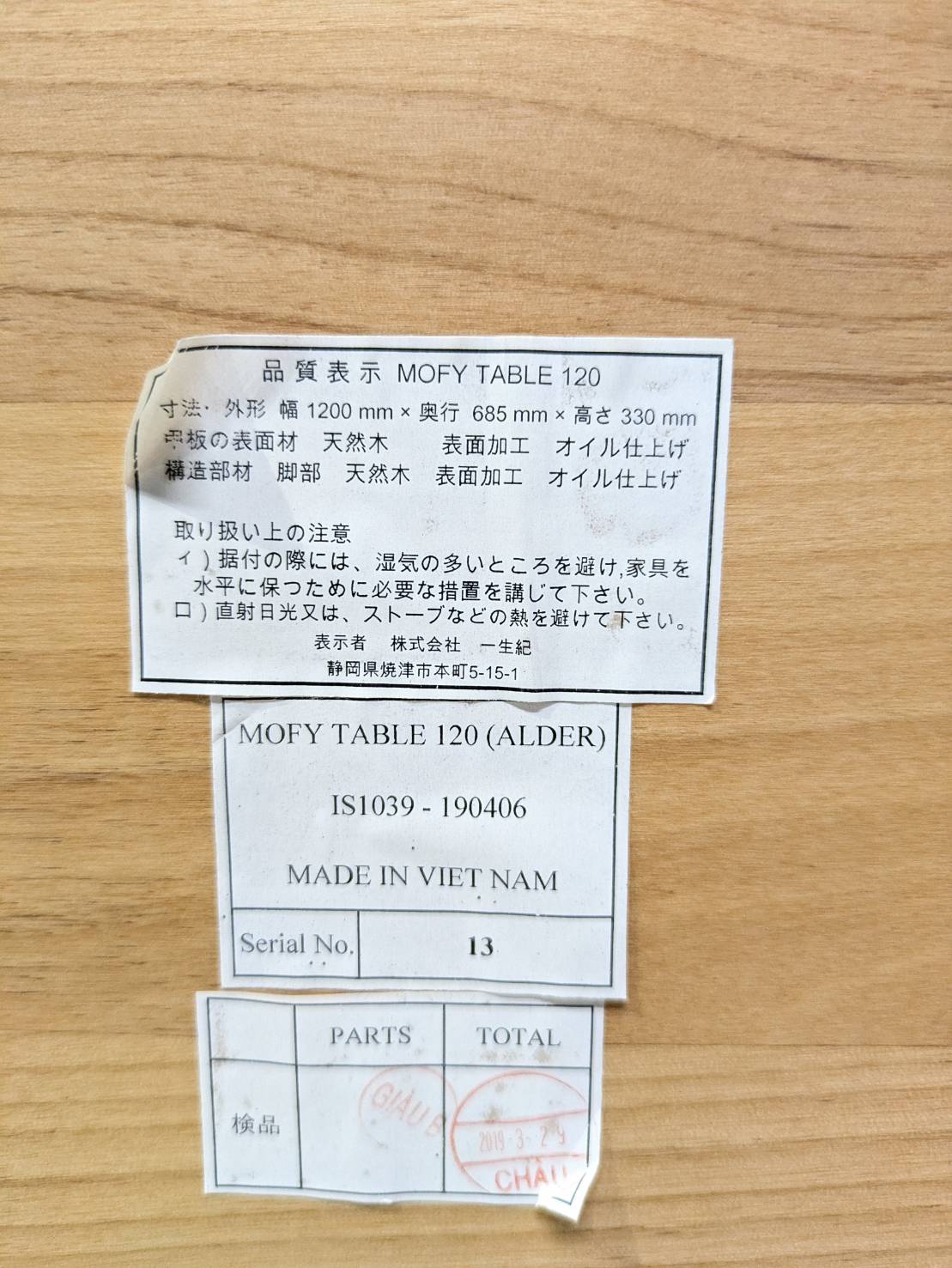 アルダー無垢材(オイル仕上げ)の木目調の落ち着くカラー。おしゃれテーブル。ISSEKI製です。