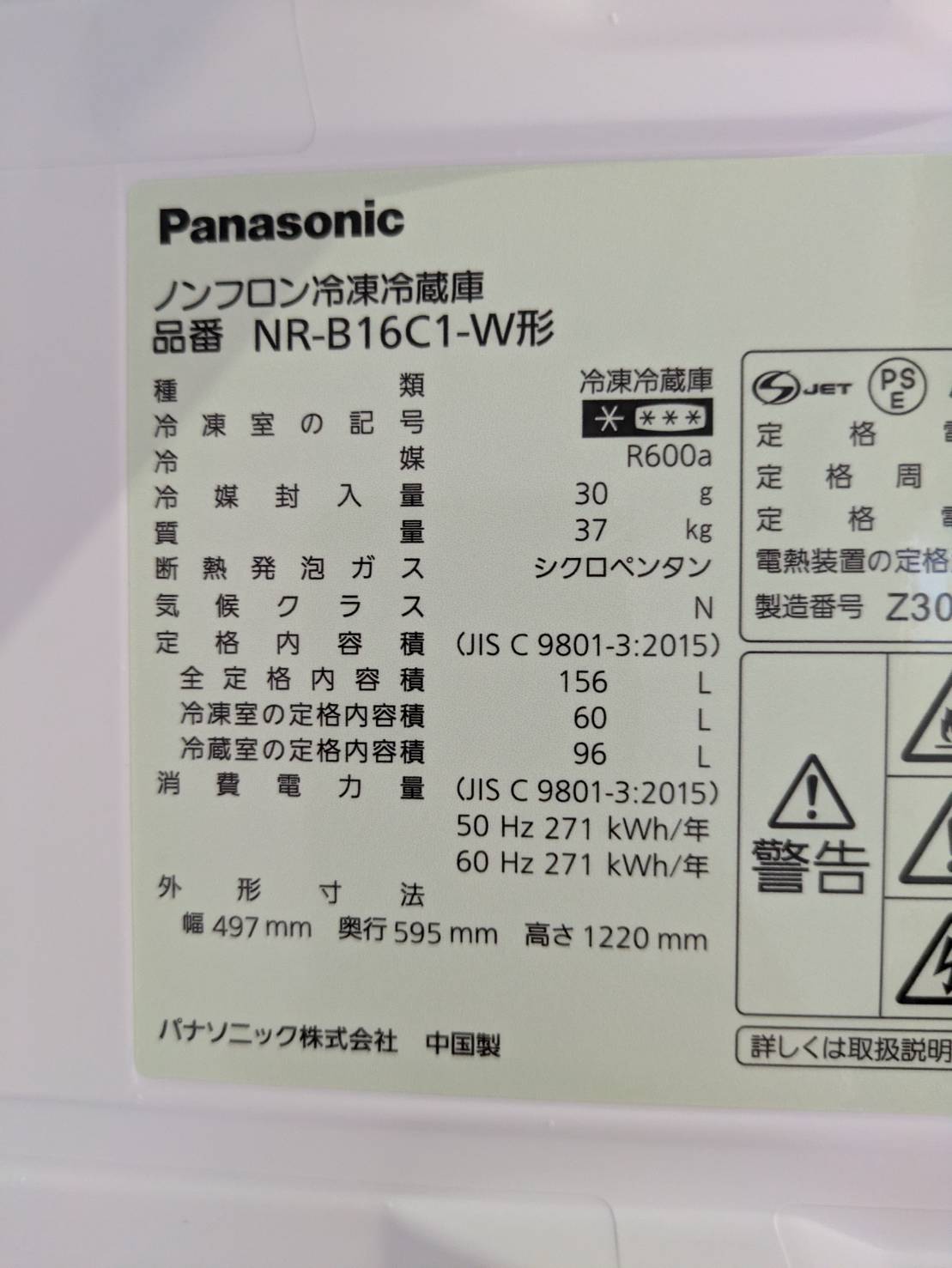 Panasonic2023年製156L冷蔵庫 NR-B16C1