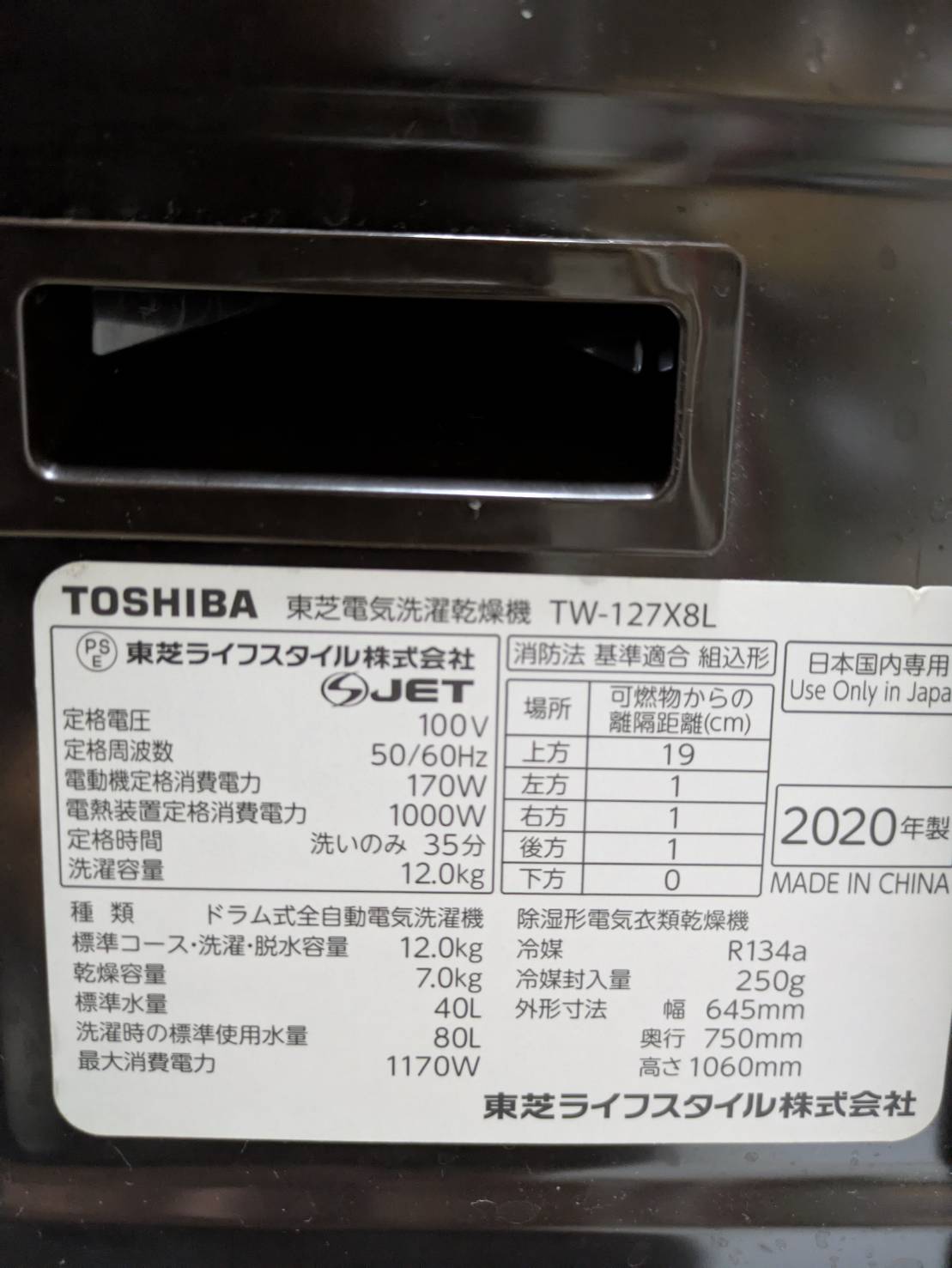 TOSHIBA2020年製ドラム式洗濯乾燥機 TW-127X8L