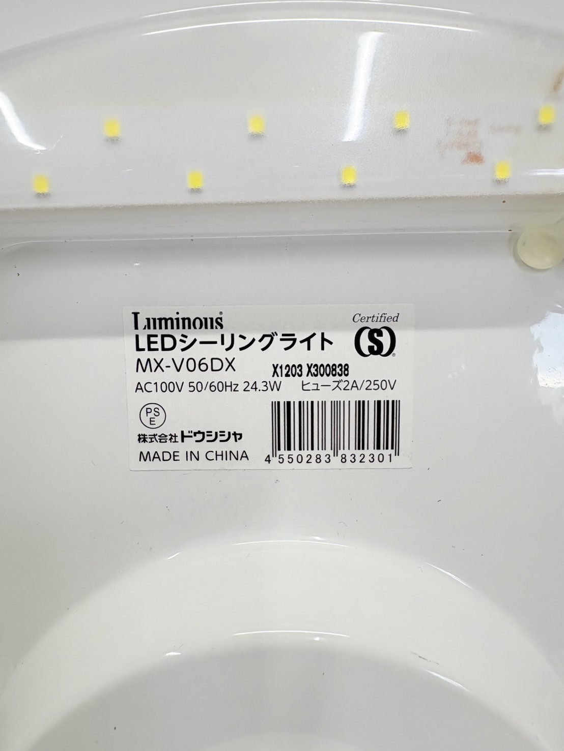 ドウシシャ6畳用LEDシーリングライト(リモコン欠品) 型番 MX-V06DX サイズ (約)Φ500×H91mm 適用畳数 ~6畳 動作確認 OK 評価ランク B- 【コンディションなど】 リモコンが欠品しています。 【保証期間】 商品到着から2カ月