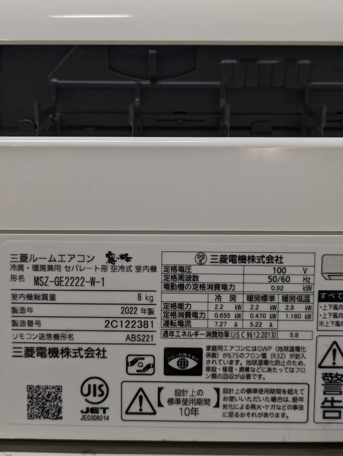 三菱電機2022年製6畳エアコン MSZ-GE2222