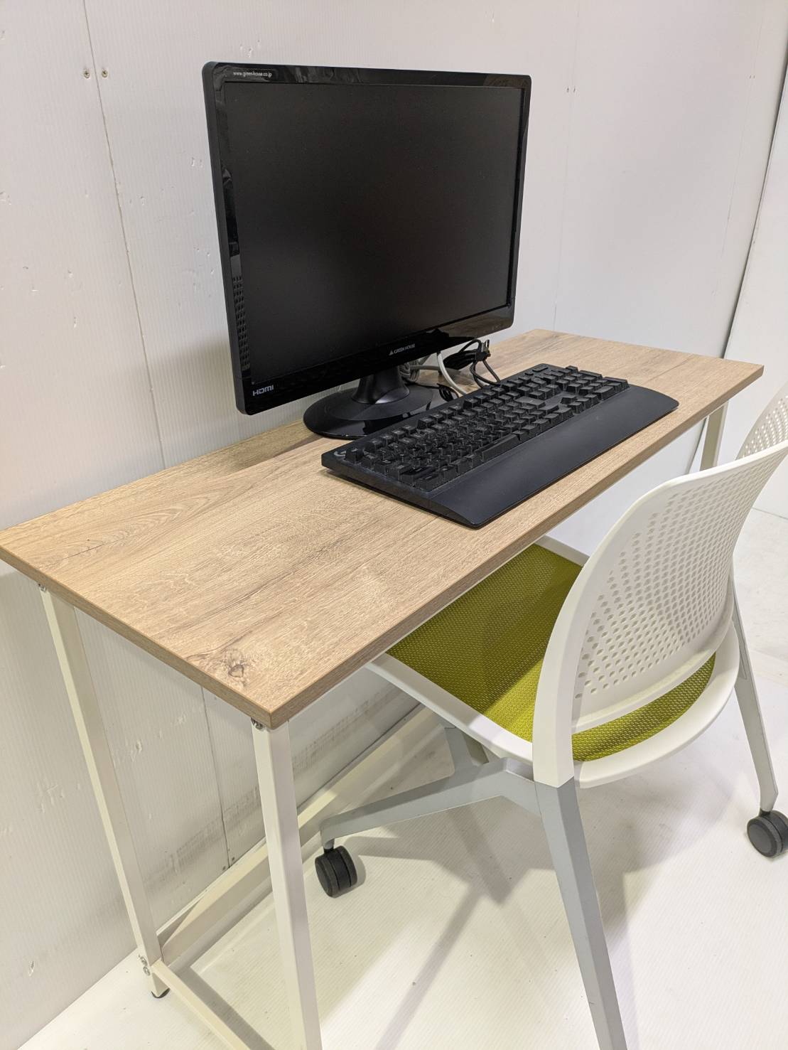イスはコクヨのオフィスチェア。キャスター移動がスムーズで通気性に優れたメッシュ素材。参考価格37,000円オフィスチェアです。