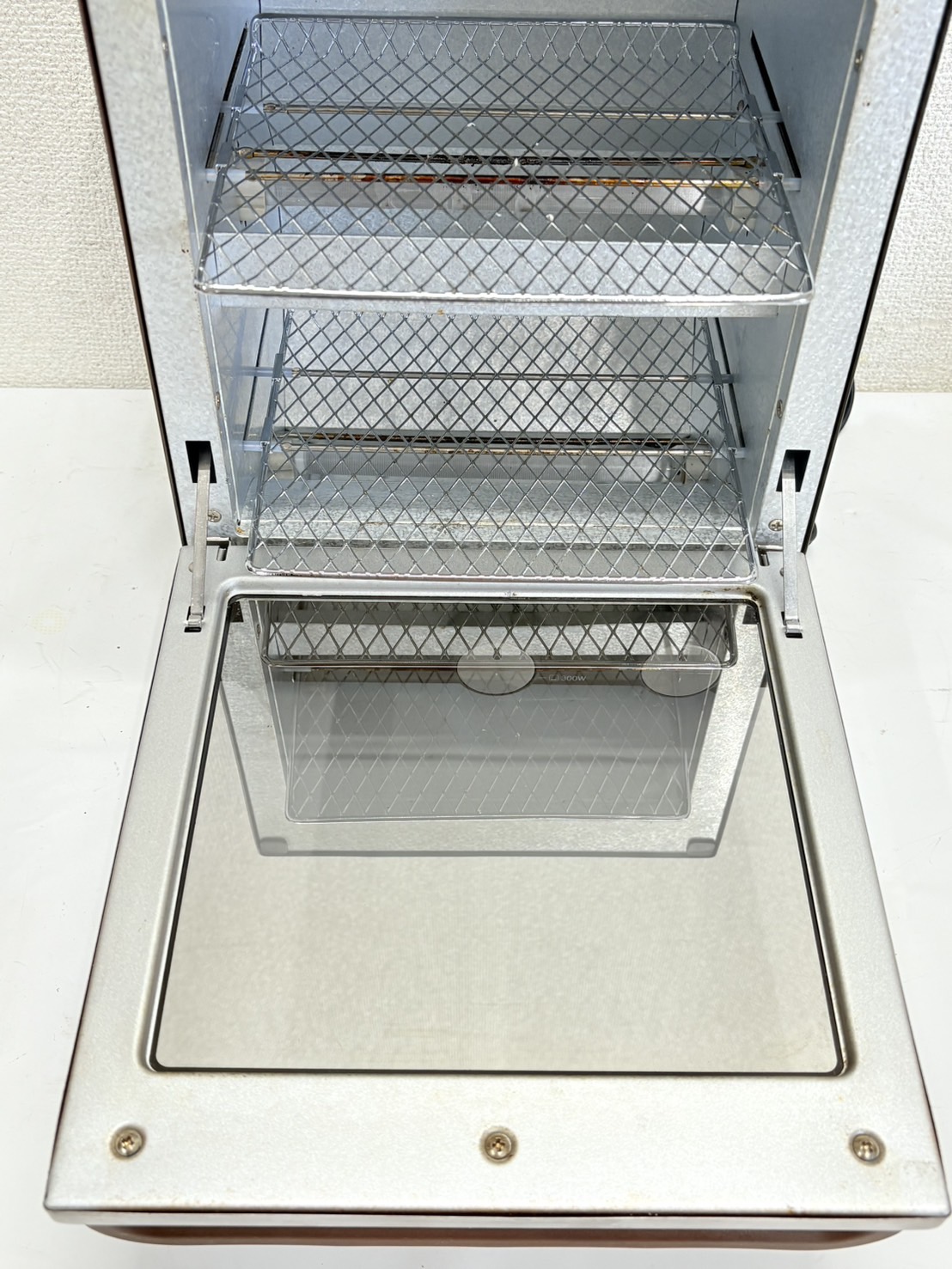 幅約24cm、縦型2段式のコンパクト設計が特徴のオーブントースター。最長15分のタイマー機能を搭載している。