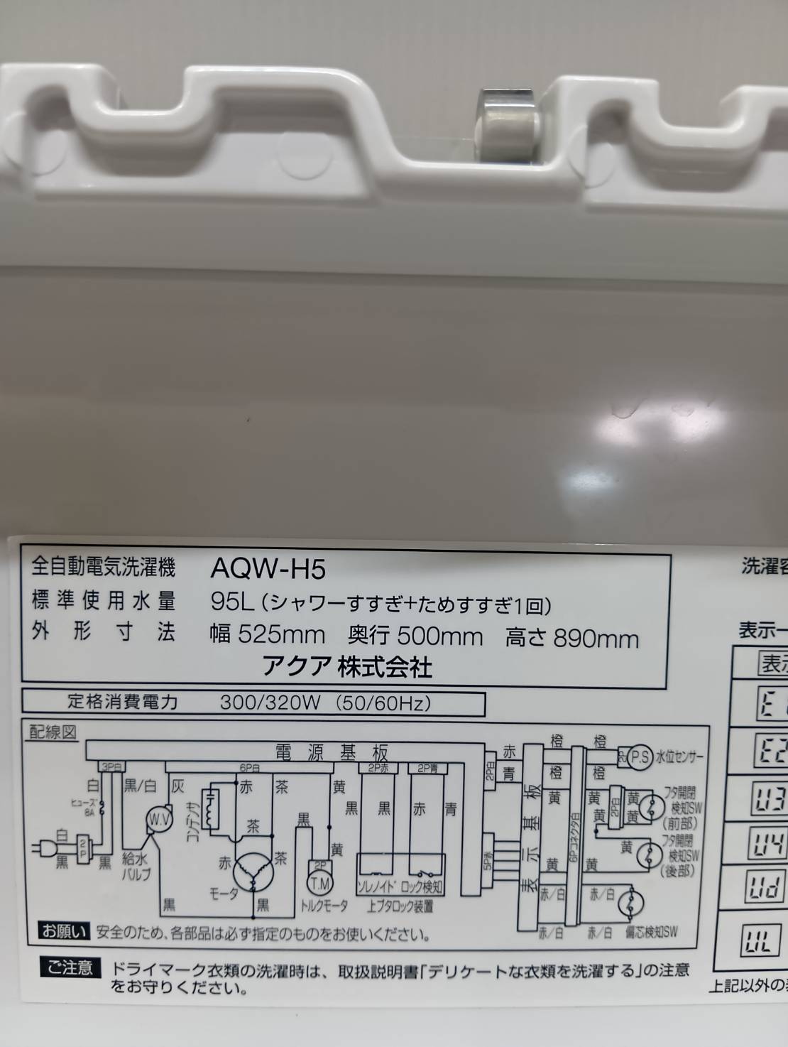 AQUA2019年製5.0Kg洗濯機 AQW-H5